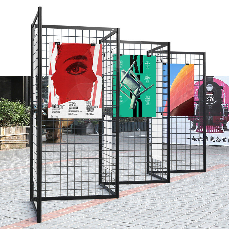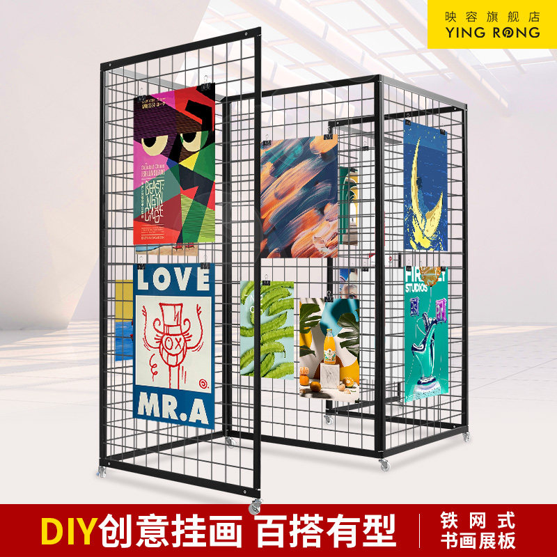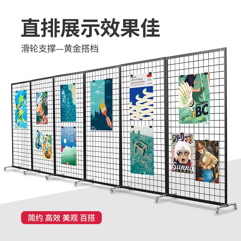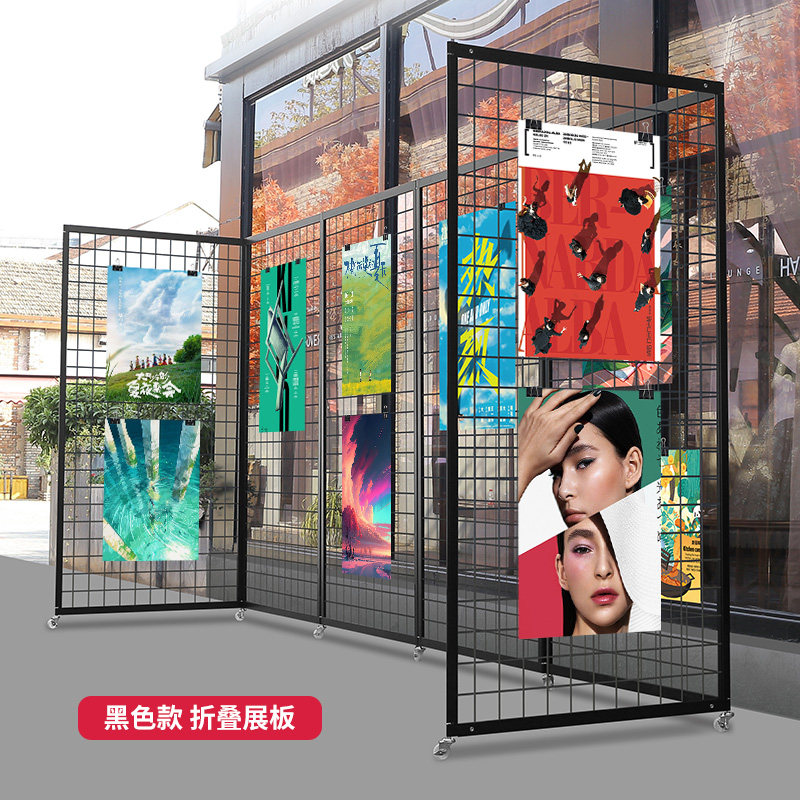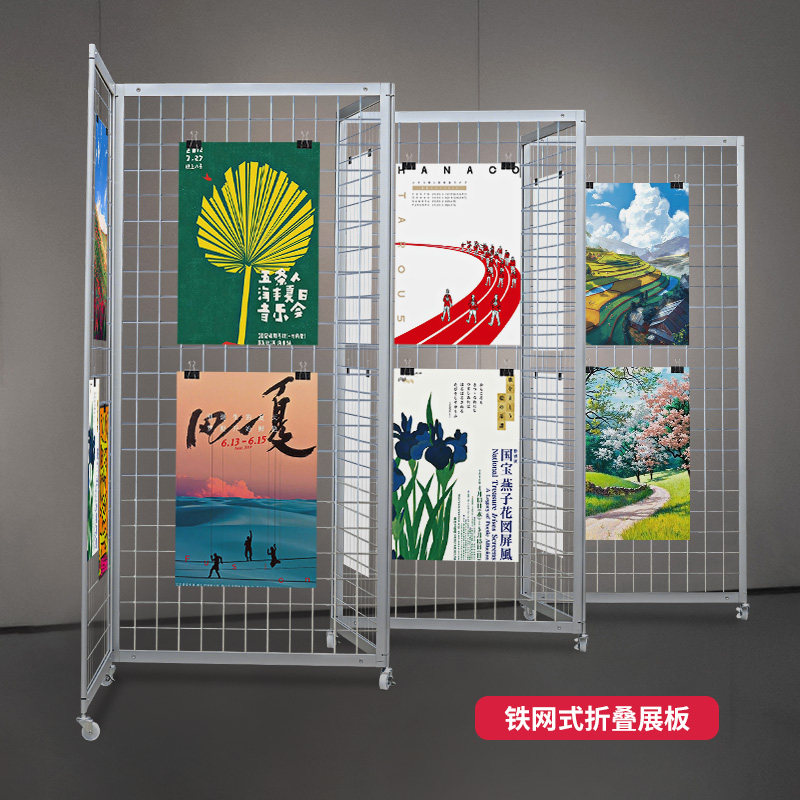 📚 铝合金折叠网格展示架画展幼儿园作品展示架移动展览架八棱柱展架