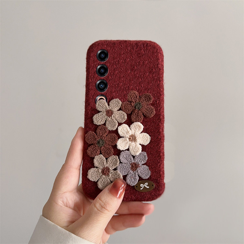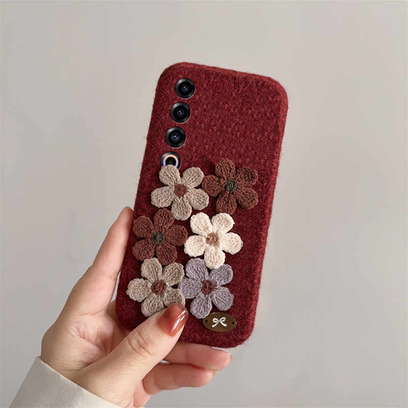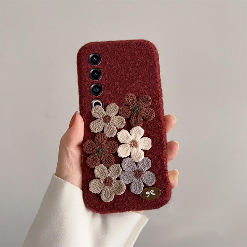 📚 ins风酒红花朵适用魅族22mini手机壳21note秋冬note16pro立体20毛绒18s复古17高级感16xs毛茸茸16thplus女16t