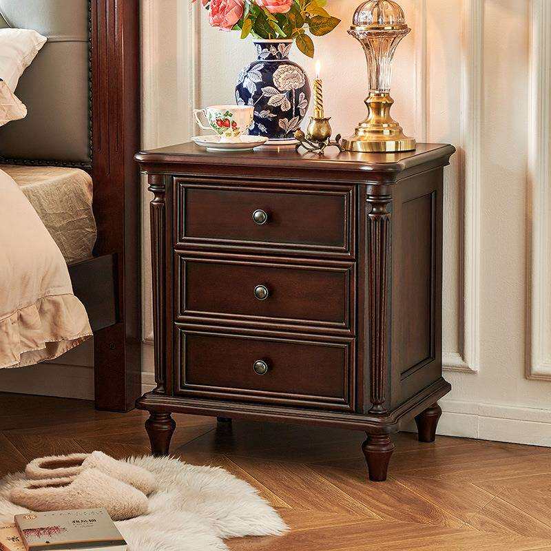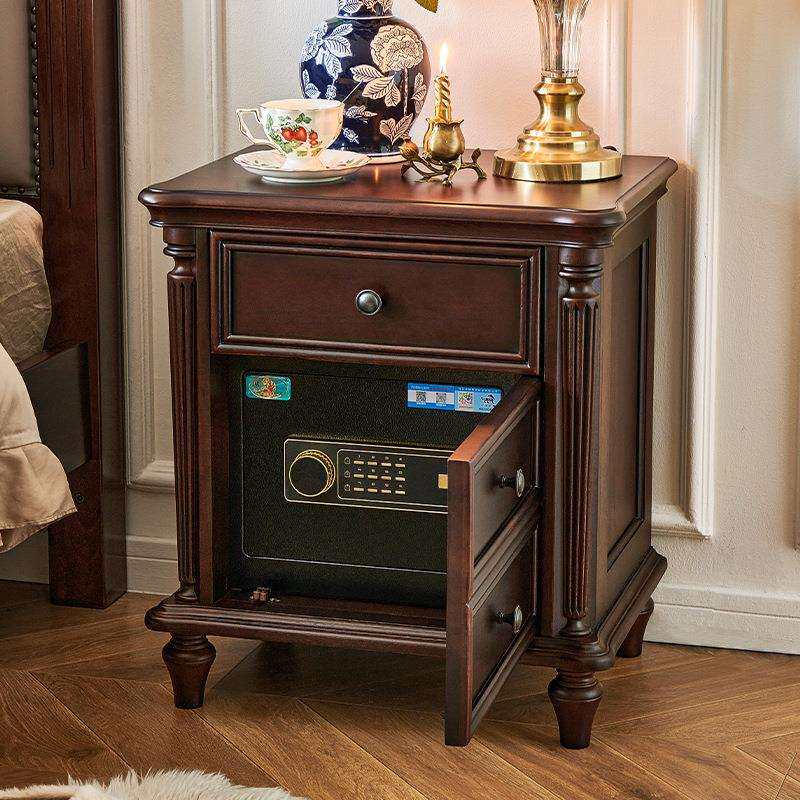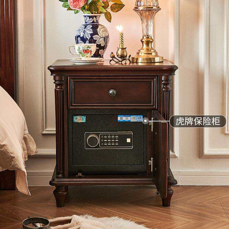 📚 美式全实木床头柜带保险箱一体核桃木原木床边柜复古卧室储物柜