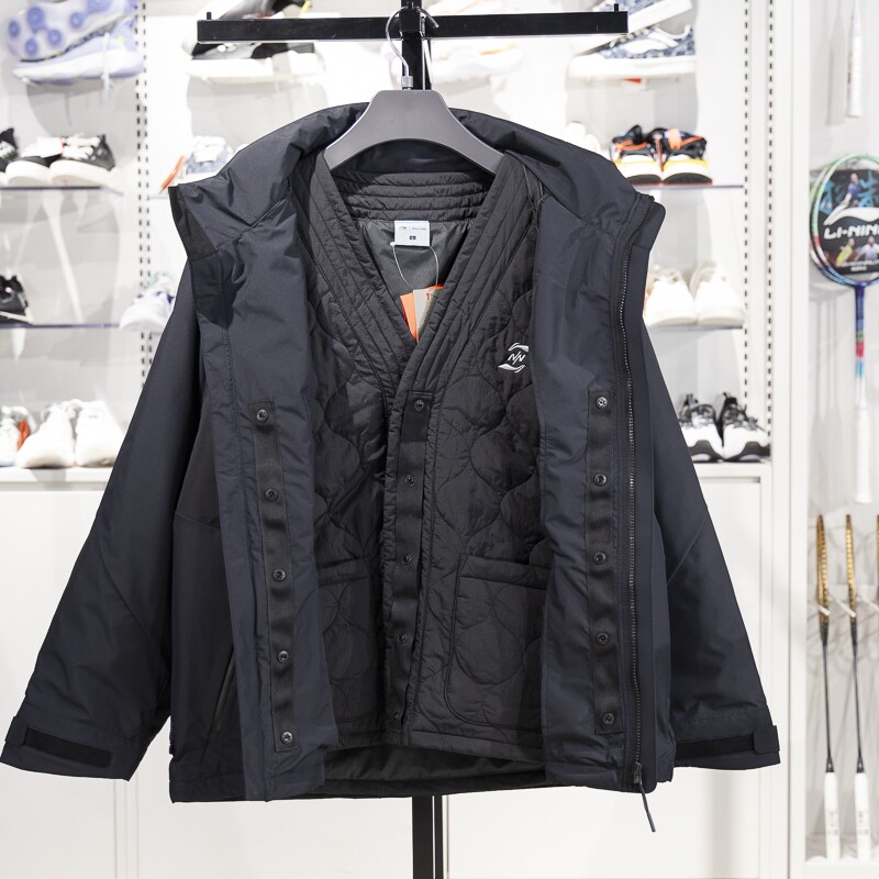 📚 李宁正品春季新款男子宽松保暖棉服内胆三合一冲锋衣AWBU075-3