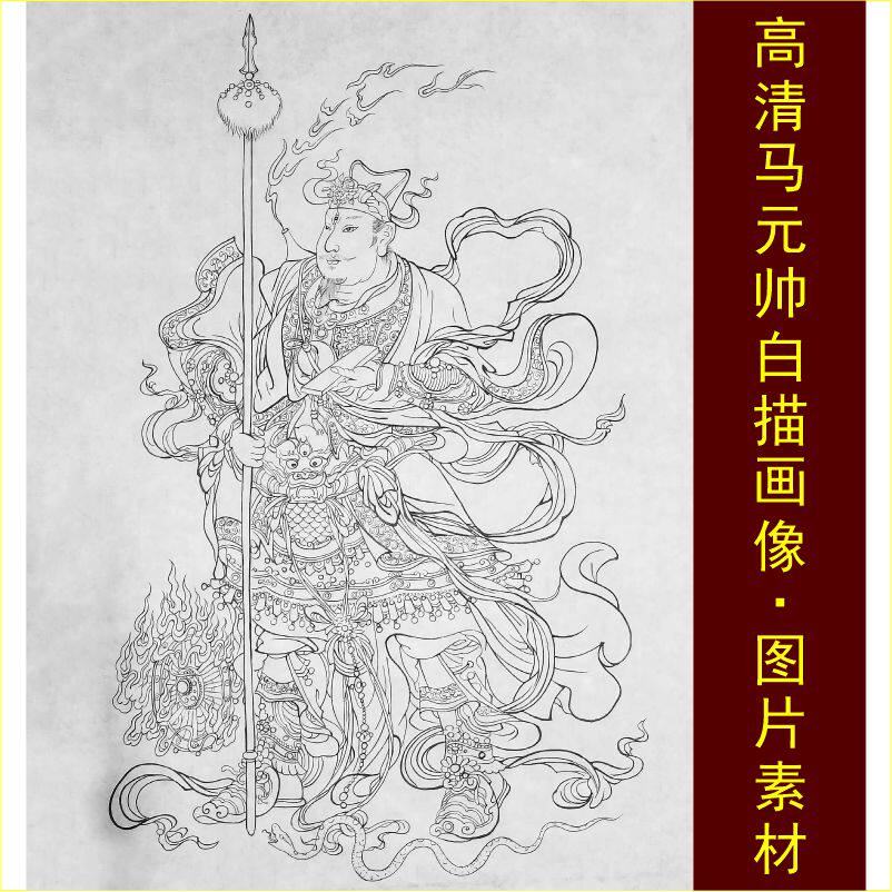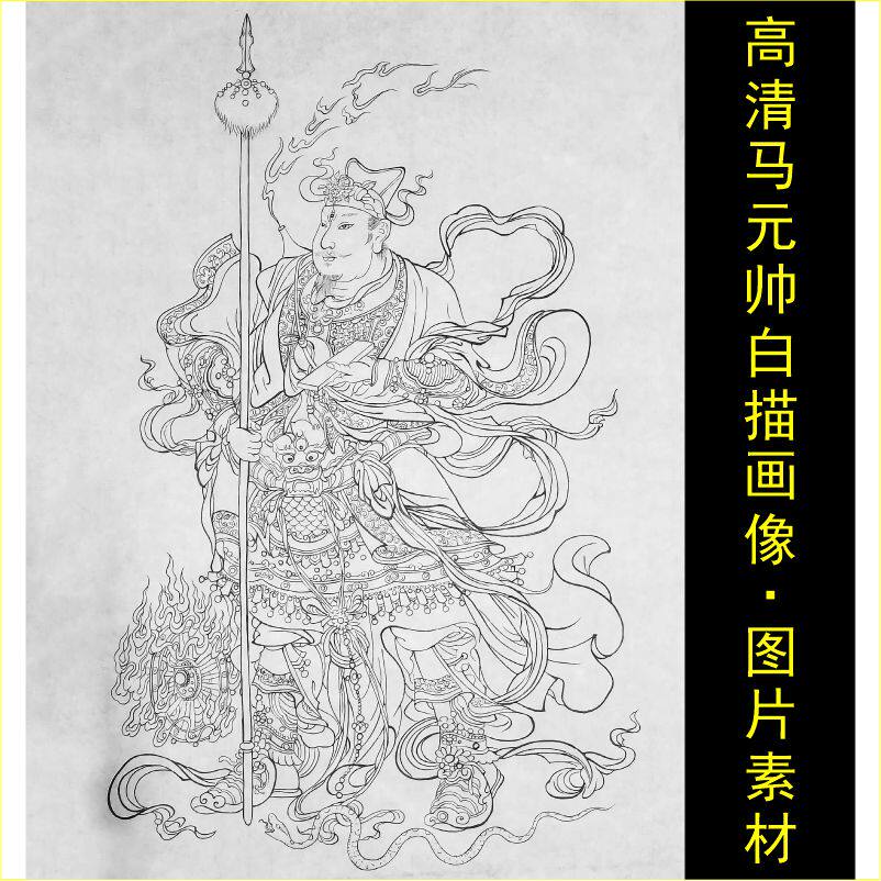 📚 高清白描马元帅画像华光大帝线稿名人电子版jpg格式tif图片素材A