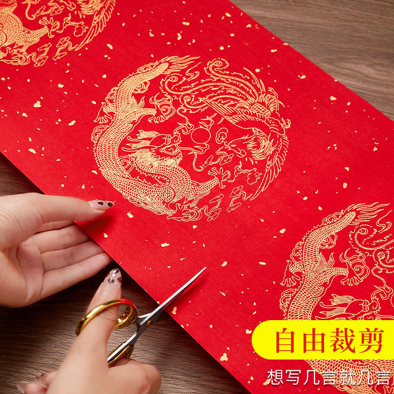 📚 空白对联专用纸2026新款万年红百米长卷春联纸自写春节福字红纸结婚书法作品纸手写过年大门洒金加厚宣纸批发