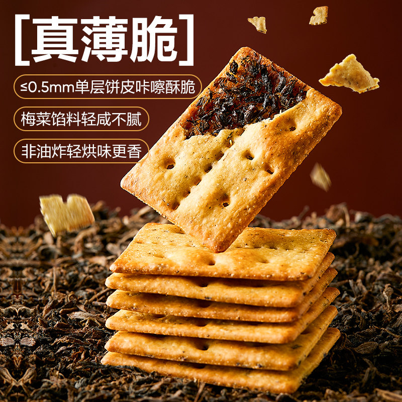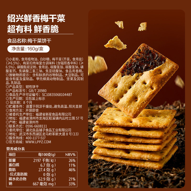 📚 良品铺子梅干菜薄脆饼干160g*3办公室早代餐咸味烧饼小吃食品零食