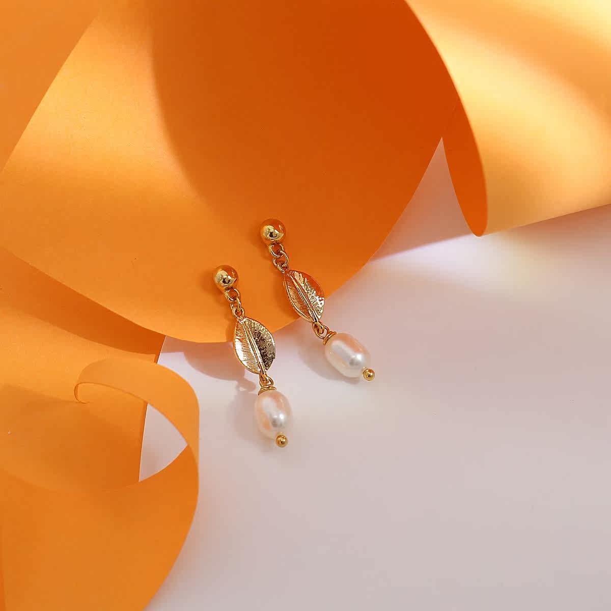 📚 现货LIMIO耳饰叶脉纹理淡水珍珠耳环耳夹耳坠可调节淑女优雅范儿