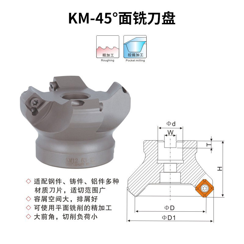 📚 数控45度平面倒角铣刀盘KM12铣刀盘直径50 63 80 100 125mm 钢用