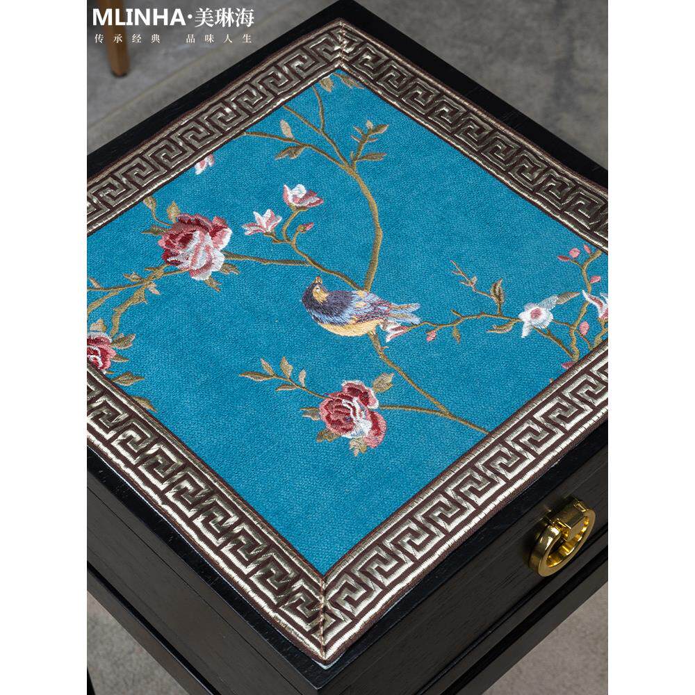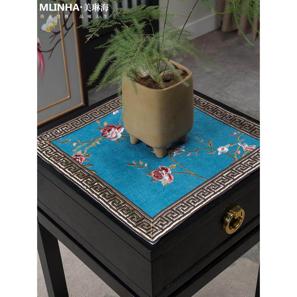 📚 新中式花架垫置物架盖布角几垫方几垫炕几垫刺绣布艺花盆架防尘垫