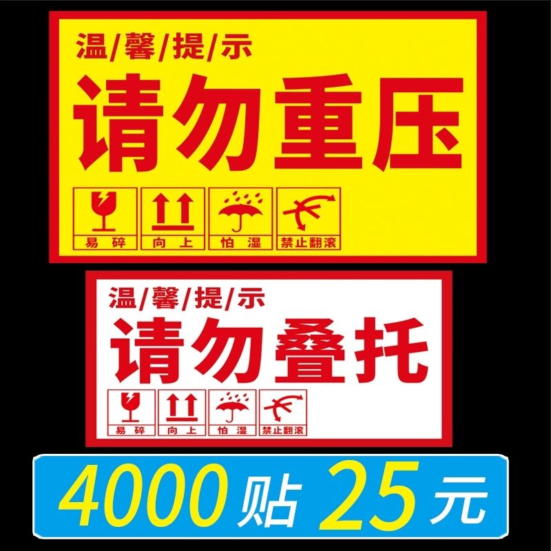 📚 请勿重压贴纸请勿叠托标签贵重物品物流快递外箱提警示自粘不干胶