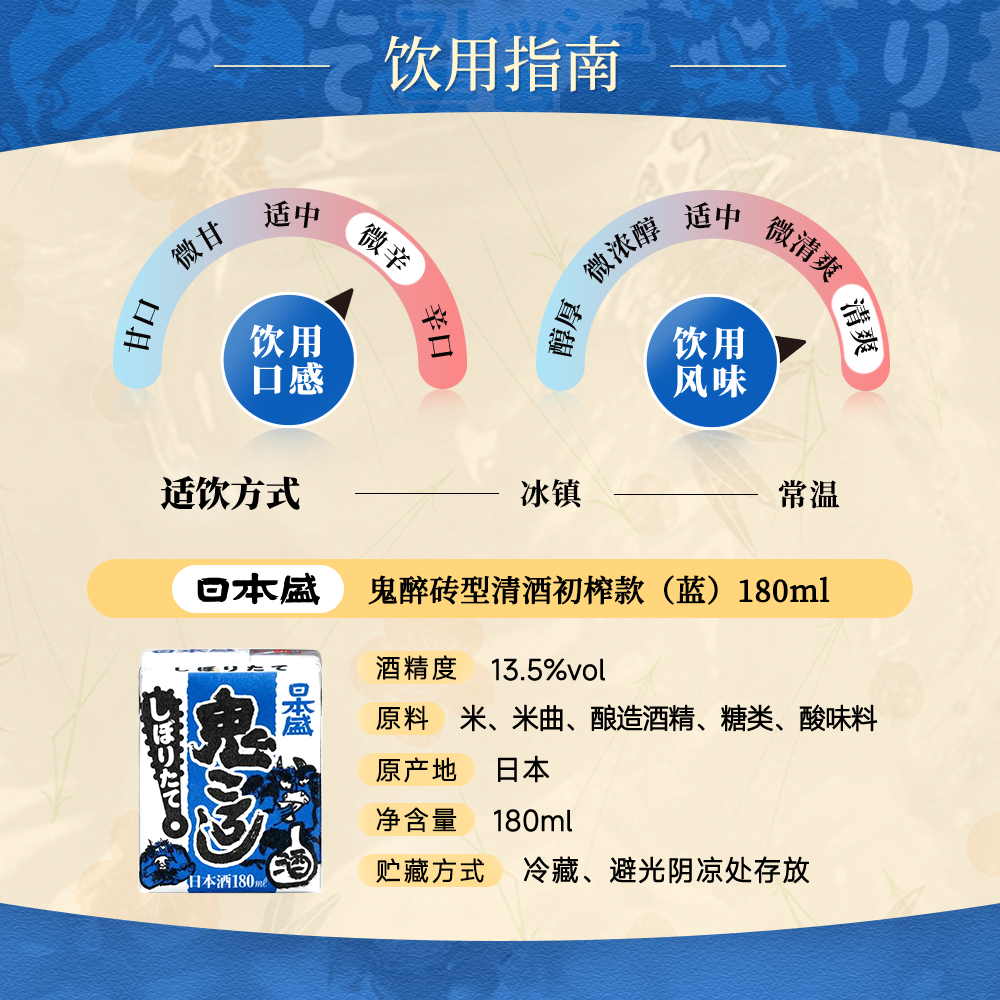 📚 日本盛鬼醉砖型清酒初榨生贮藏酒鬼杀辛口便携纸盒180ml*5