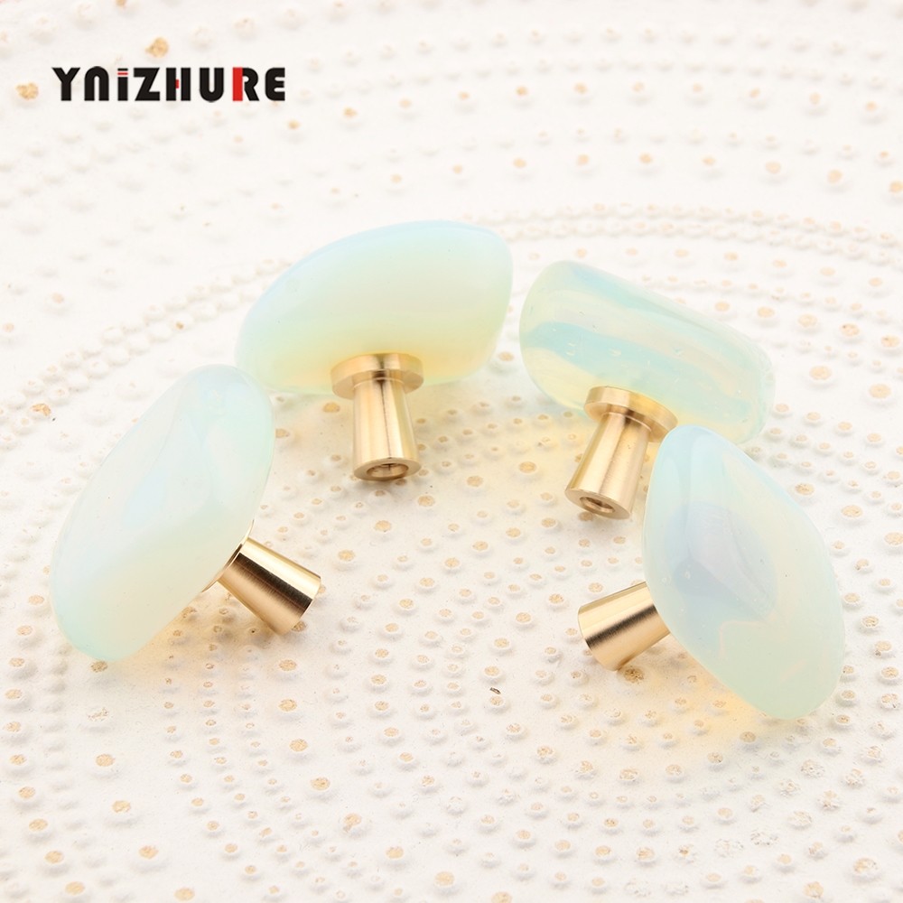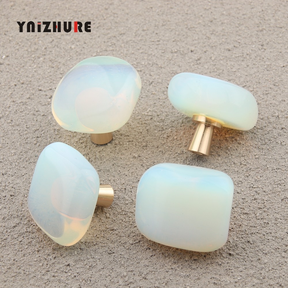 📚 轻奢黄铜人造蛋白石单孔抽屉小拉手橱柜衣柜门装饰随形矿石把手