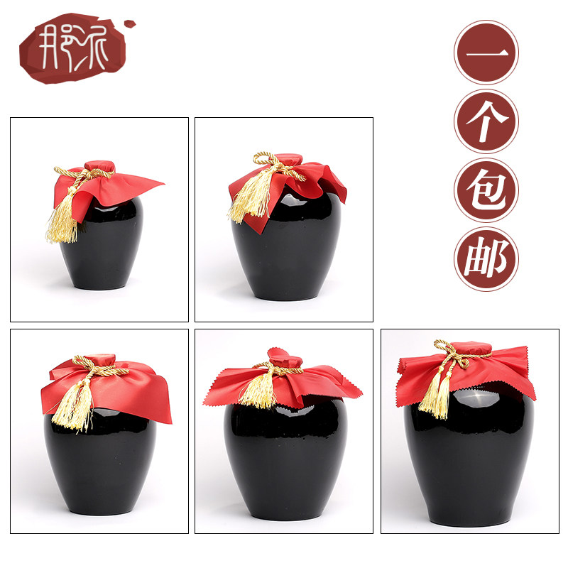 📚 包邮土陶黑釉陶瓷酒坛酒瓶1斤2斤3斤5斤10斤装空酒瓶子带盖密封罐
