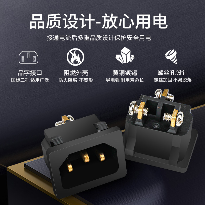 📚 卡式品字插座公座带耳10A 250V螺丝脚15A/UL高压锅电饭煲电源插座