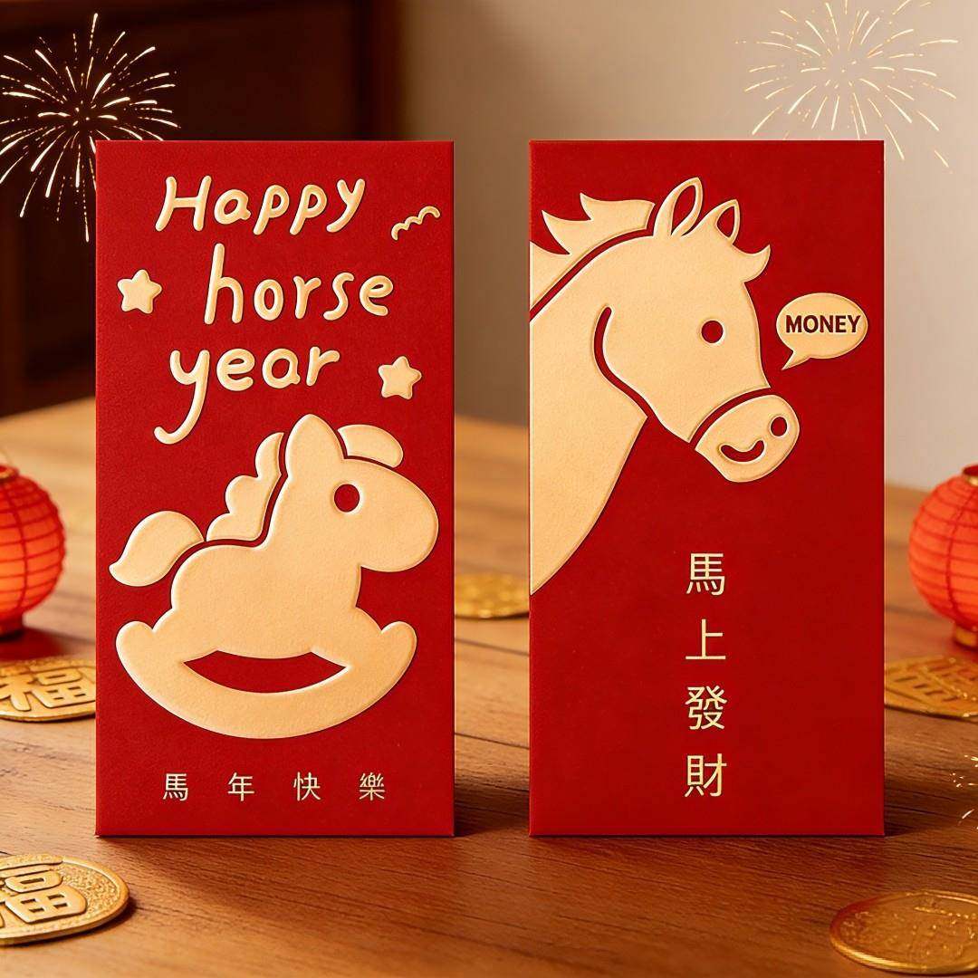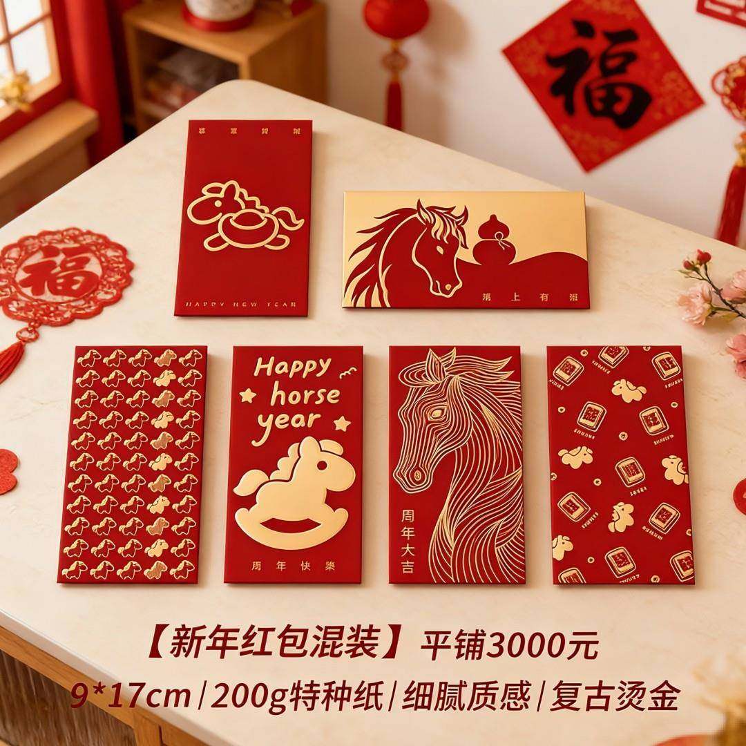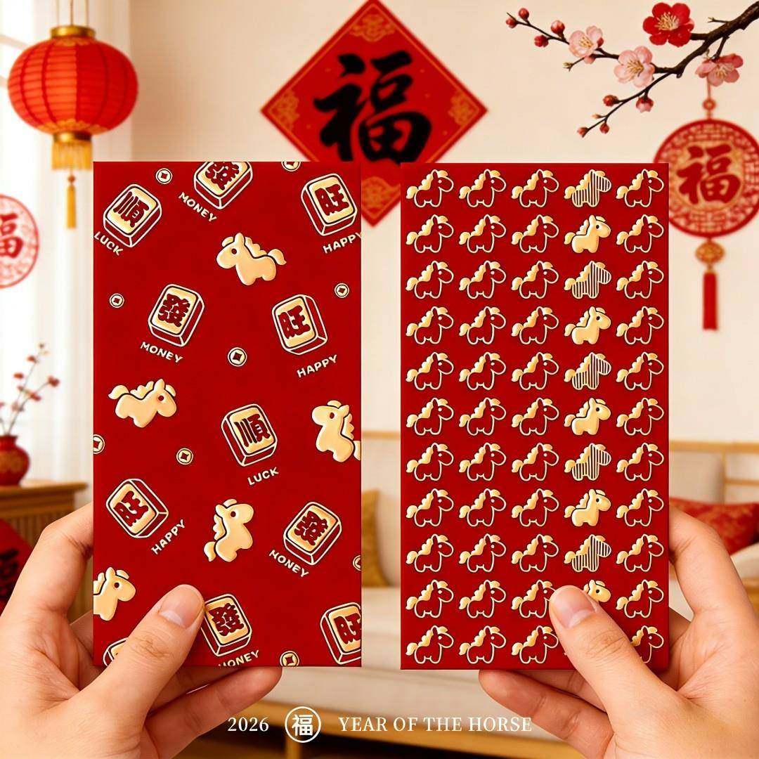 📚 2026马年创意烫金利是封可爱萌马红包高档厚款大号方形亲奢麻将款