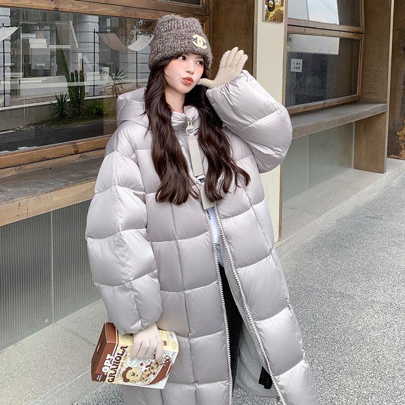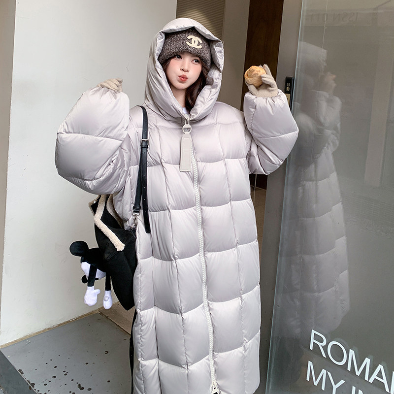 📚 银灰色长款90白鸭绒连帽羽绒服女2025冬季新款加厚保暖大被子外套