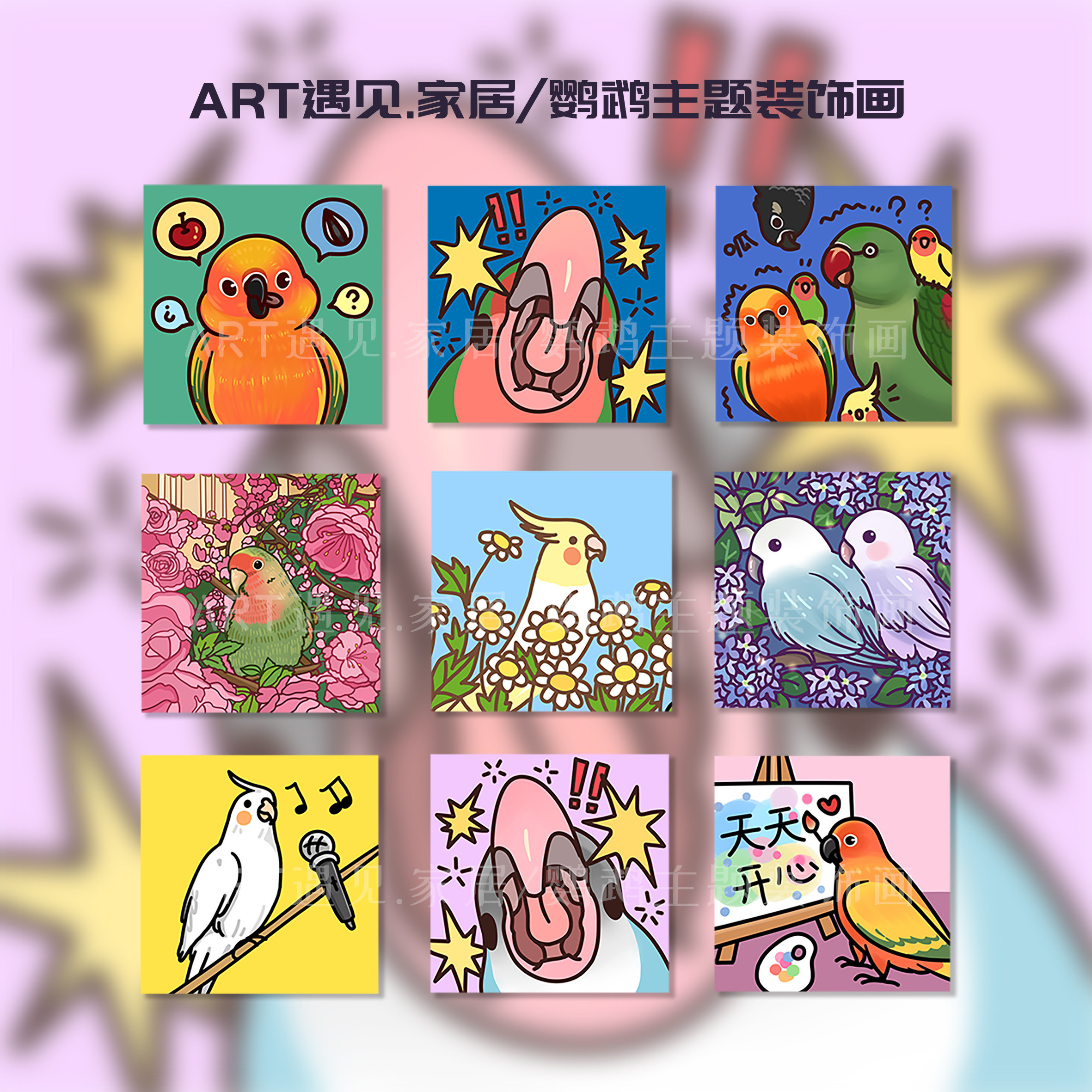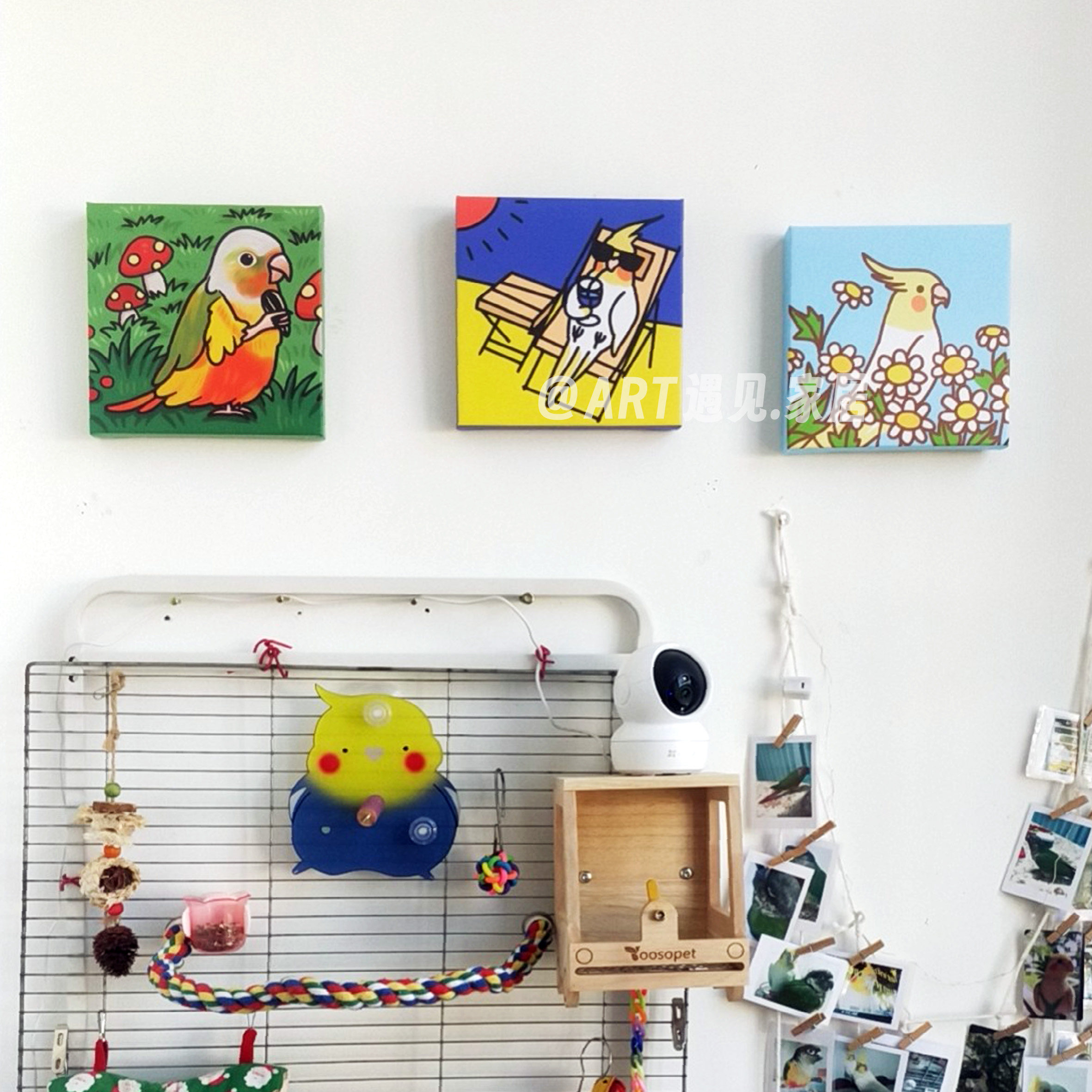 📚 鹦鹉装饰画 可爱牡丹挂画 线条鹦鹉装饰画小太阳趣味鸟咖鸟笼挂画