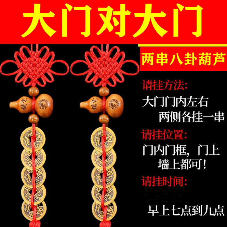📚 桃木葫芦五帝钱化解门对门厨房卧室玄关挂饰铜钱福禄床头朝西挂件