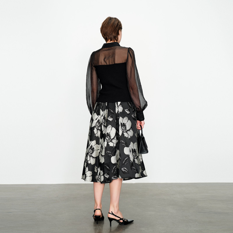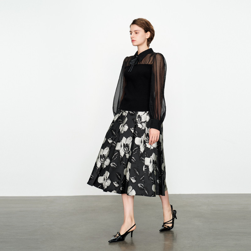 📚 婉甸2025黑白提花长裙通勤风A版半身裙1241K07DY1
