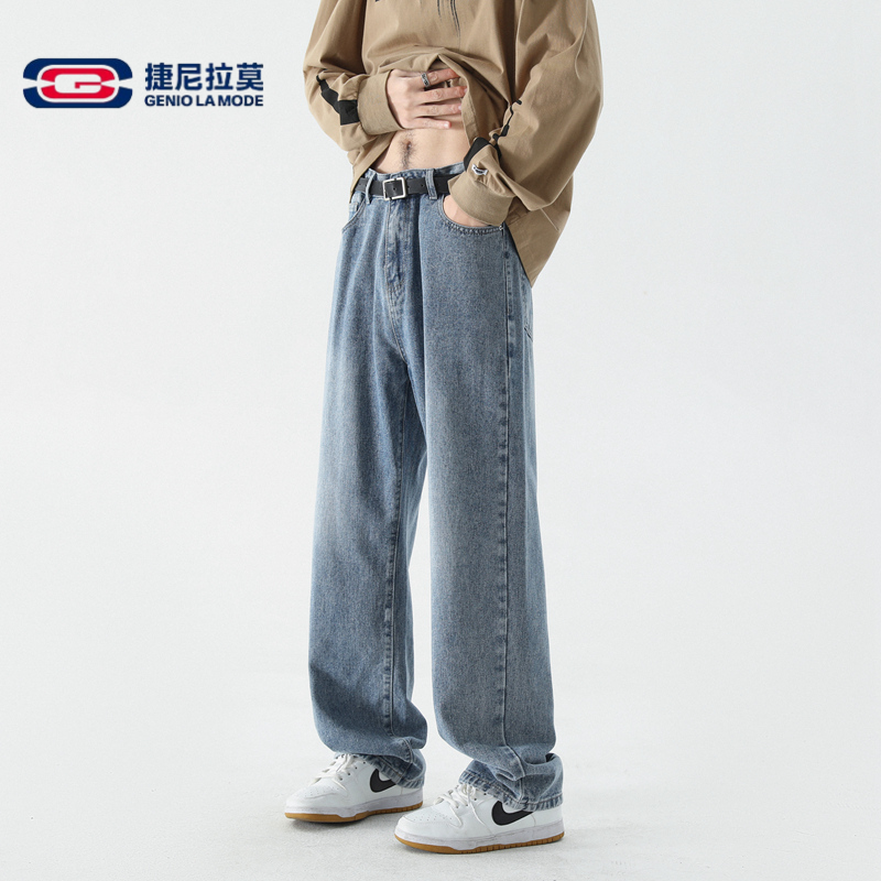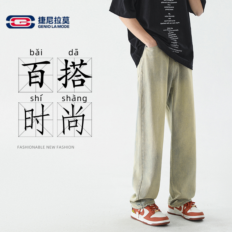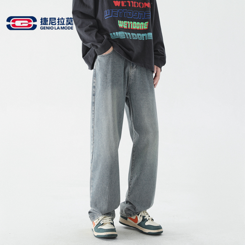 📚 【敖瑞鹏代言】捷尼拉莫牛仔裤纯色宽松直筒裤子工装休闲牛仔裤