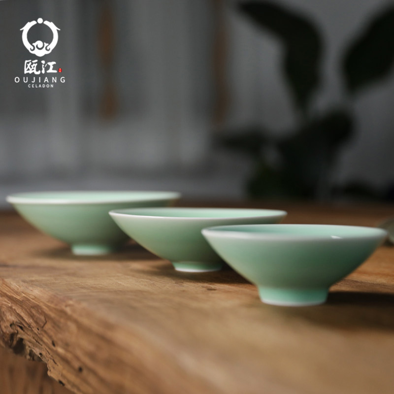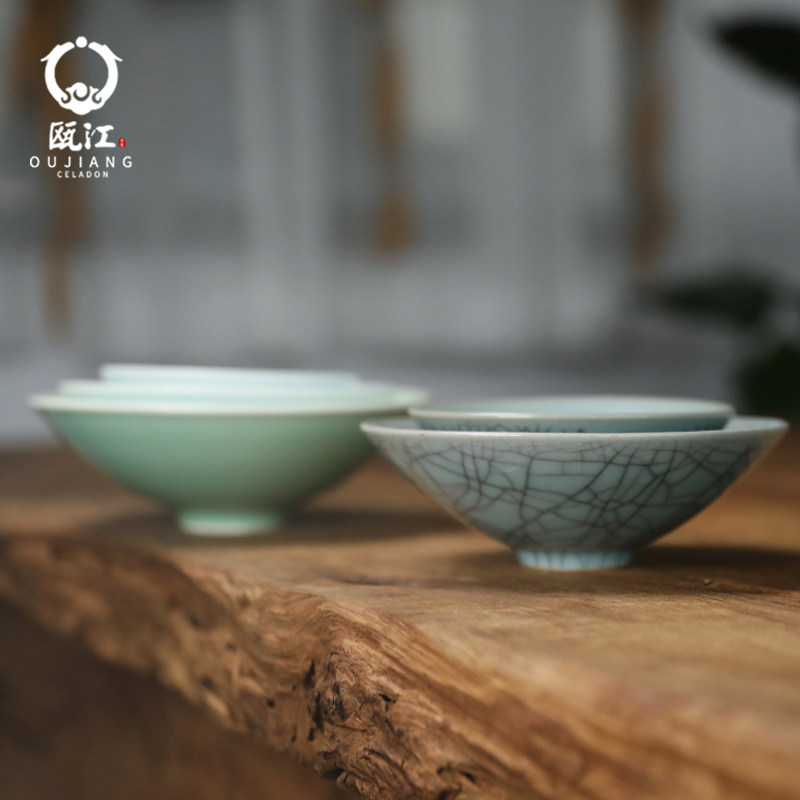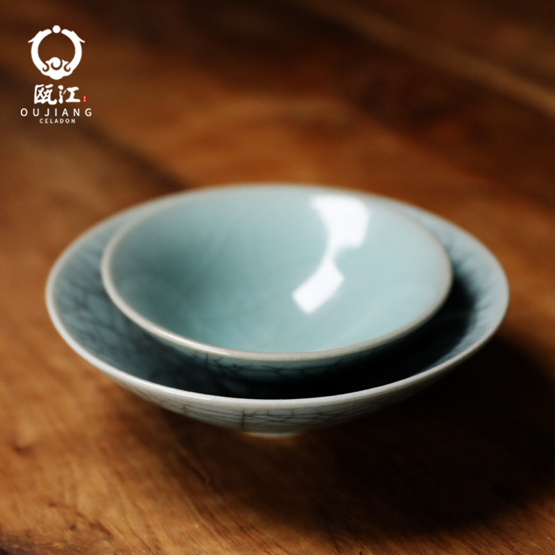 📚 瓯江龙泉青瓷酒碗创意复古餐具4.5英寸哥窑斗笠碗瓜果碗盏中式碗