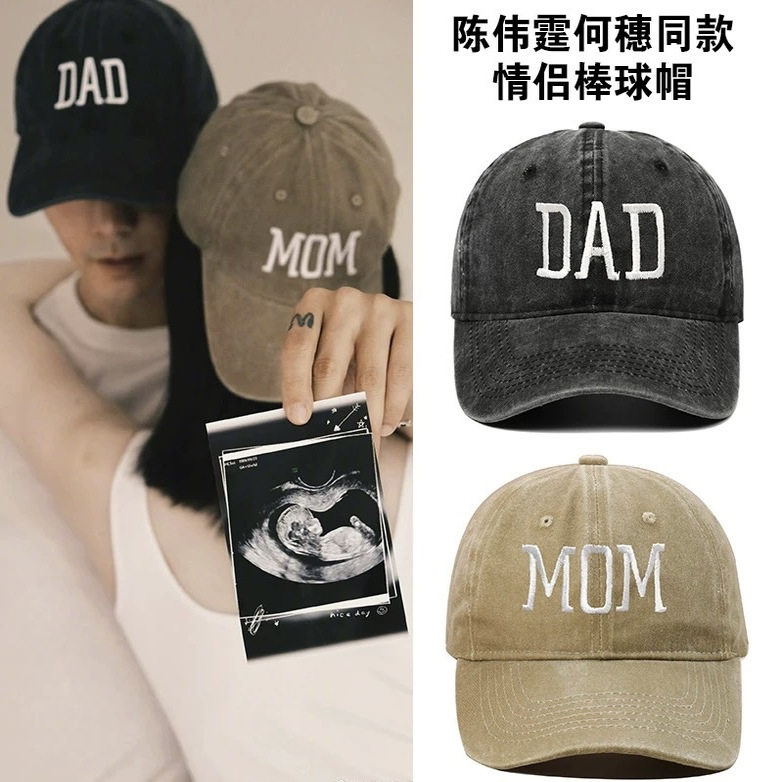 📚 陈伟霆何穗DAD MOM帽子情侣亲子同款一家三口宝宝刺绣鸭舌帽母女