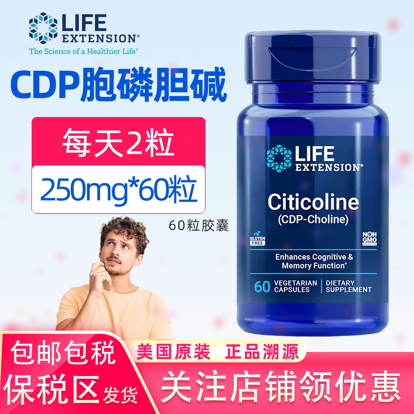 📚 保税区美国原装LifeExtension胞磷胆碱胶囊CDP Choline认知记忆力