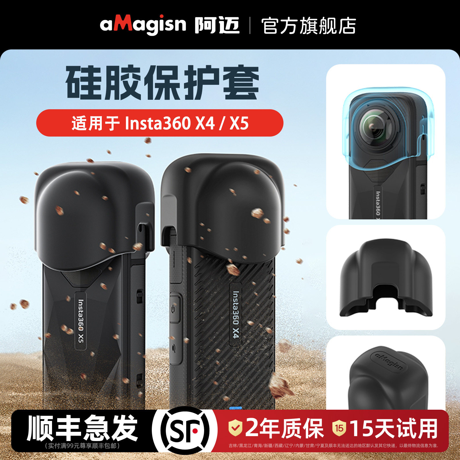 📚 aMagisn阿迈适用影石Insta360 X5镜头保护盖硅胶镜头套镜头防护收纳配件