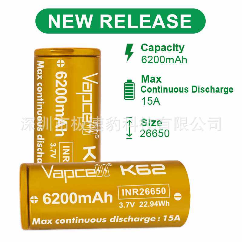 📚 原厂VAPCELL IMR26650 6200mah 15A/25A持续放电高容量动力电池