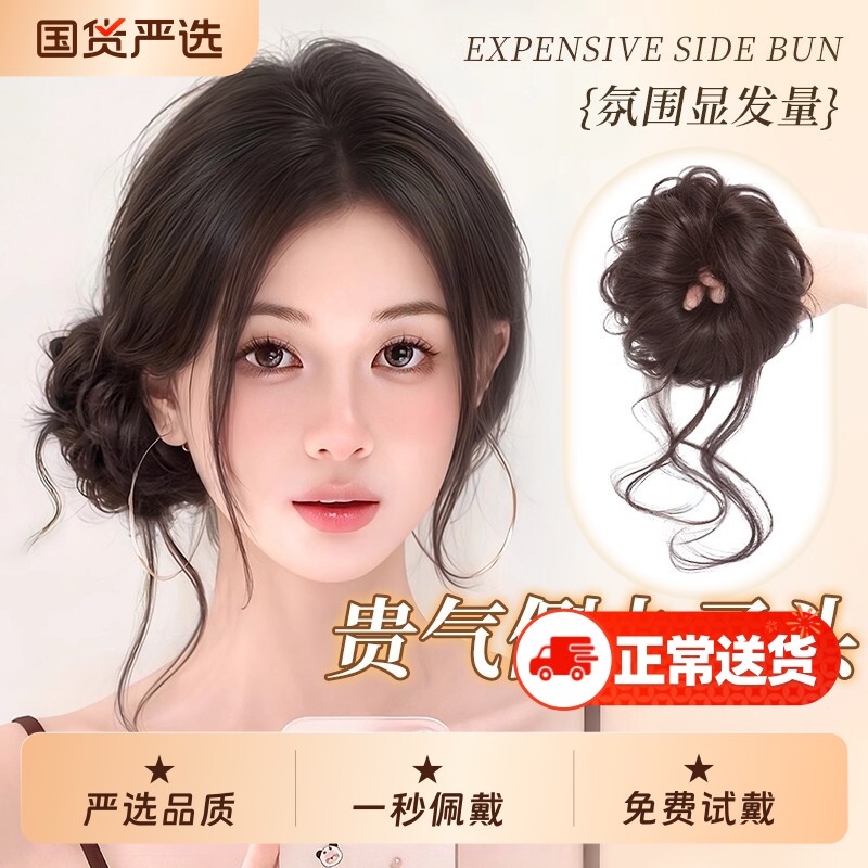📚 侧扎龙须丸子头假发发圈盘发发包发盘发神器假发包花苞头发型饱满