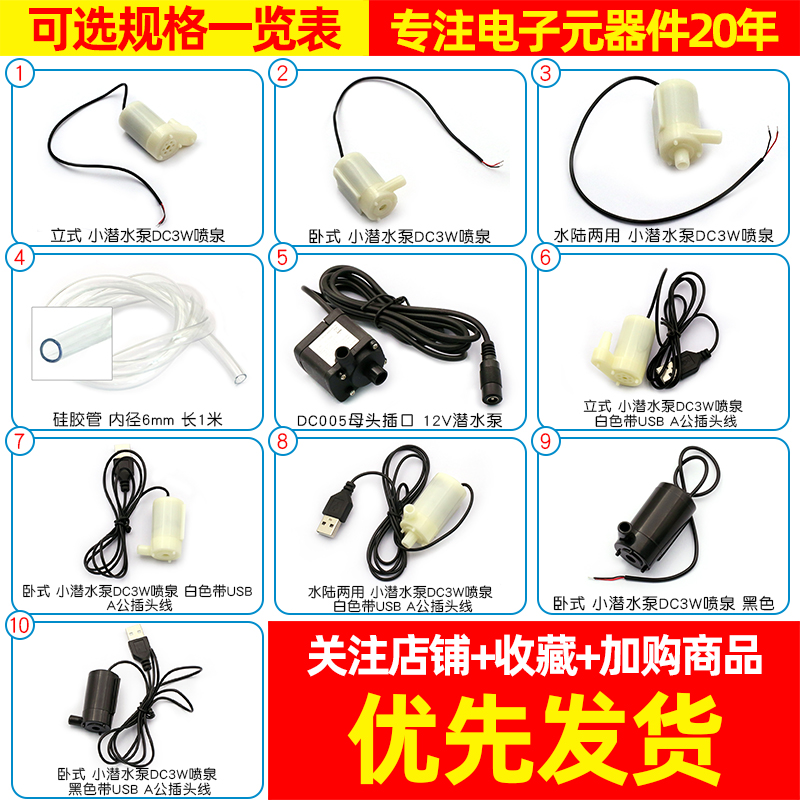📚 直流电机马达3V小水泵立式小潜水泵DC3W喷泉 立式微型4.5V 5V 6V