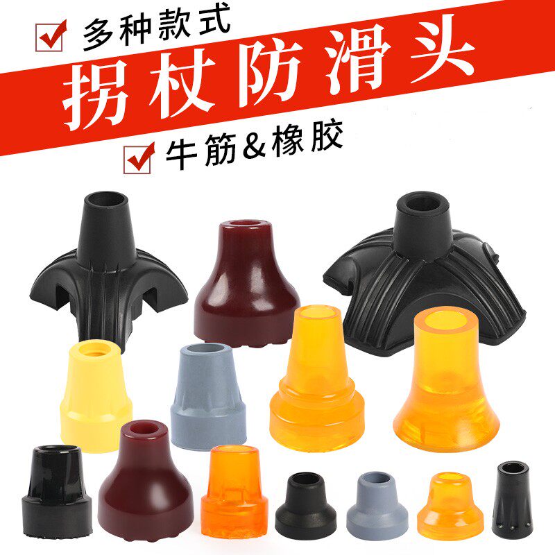 📚 单双拐杖防滑脚垫子橡胶头手杖登山杖老人四脚套配件静音拐棍底座