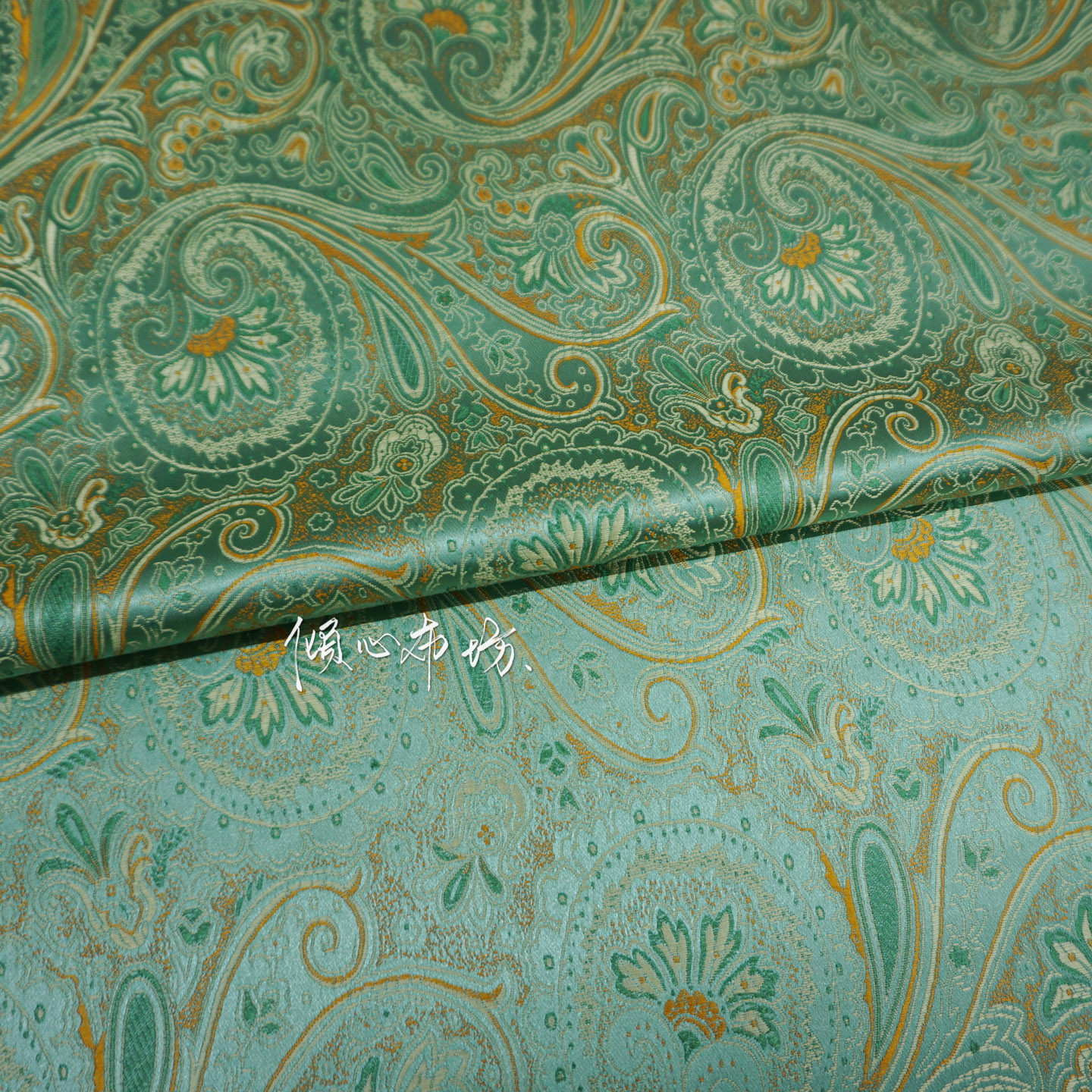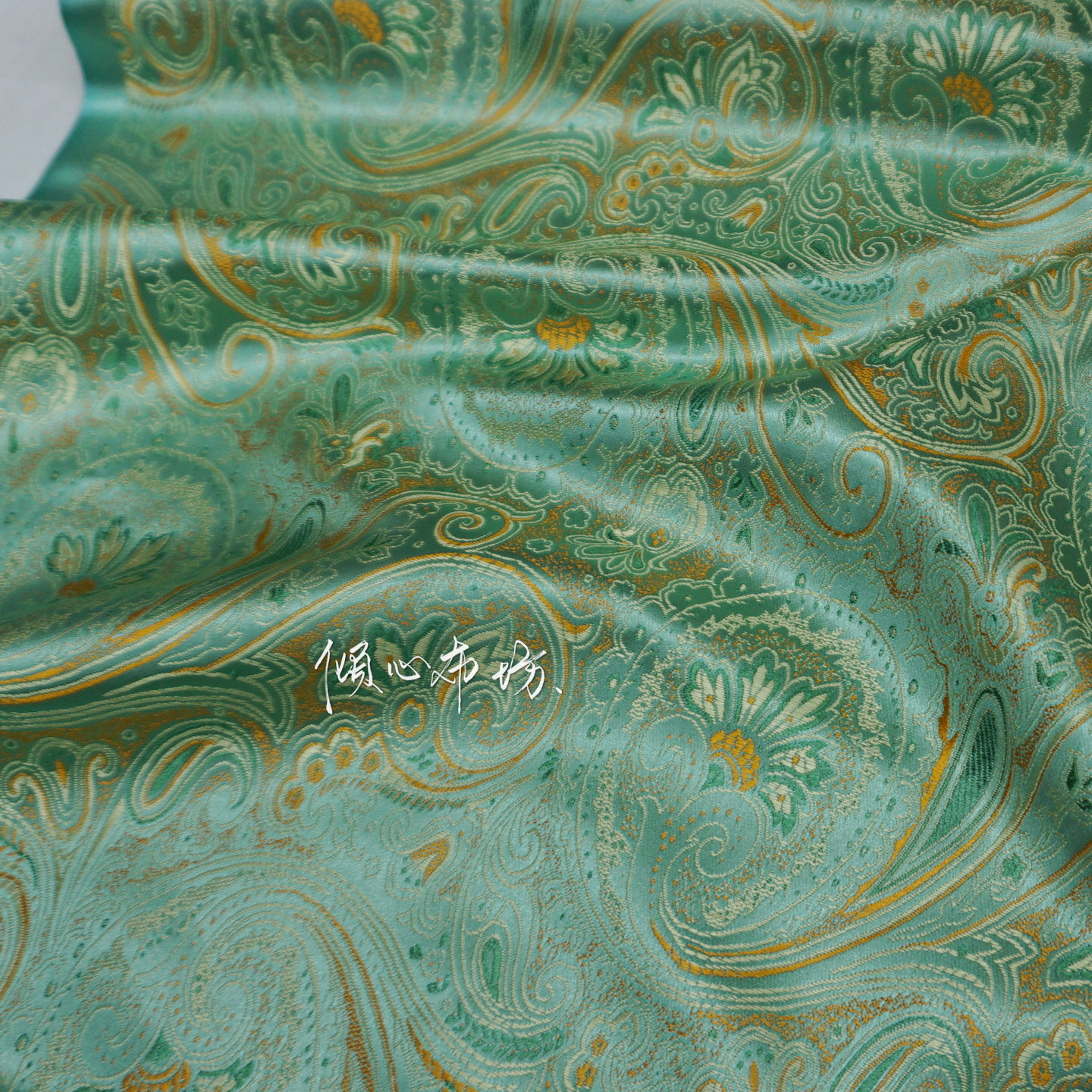 📚 薄荷水绿色琵琶花凤尾佩斯利花织锦缎面料民族宋锦中国风绸缎布料