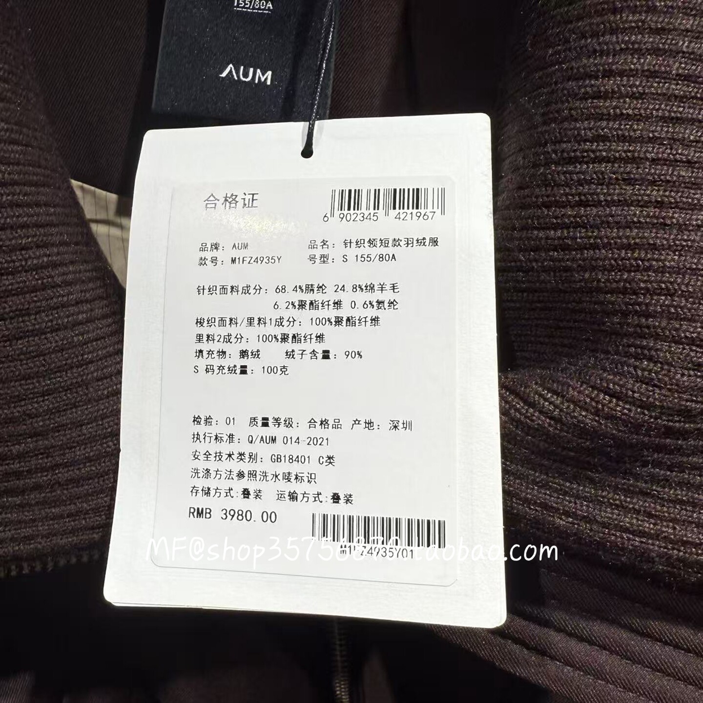 📚 AUM奥姆2025冬专柜正品 针织领 短款 羽绒服外套M1FZ4935Y 3980