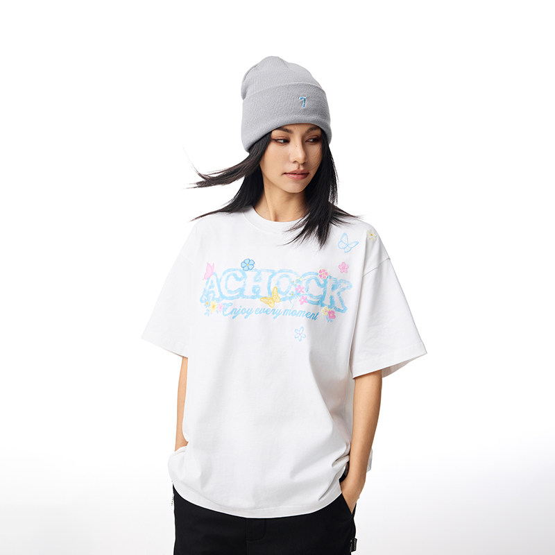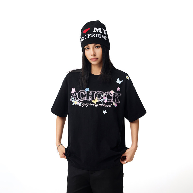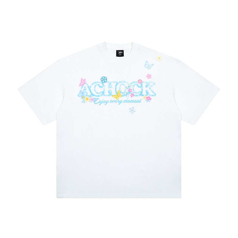📚 【Achock官方店】美式街头手绘logo短袖潮牌新款情侣蝴蝶刺绣T恤
