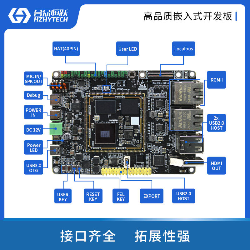 📚 合众恒跃全志T536国产化工业级开发板四核 A55+RISC-V 树莓派接口