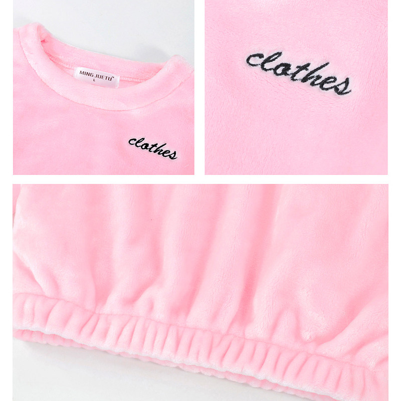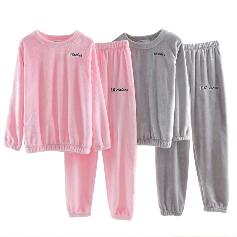 📚 法兰绒长袖睡衣套装女加厚加绒保暖束脚收口珊瑚绒套头家居服秋冬