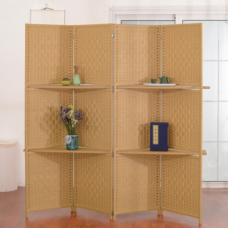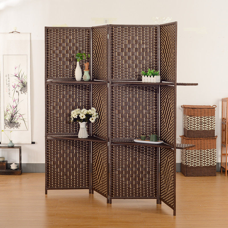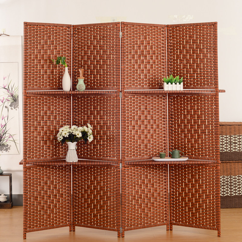 📚 藤编屏风隔断新中式简约现代实木单扇可移动折叠餐厅玄关折屏茶室