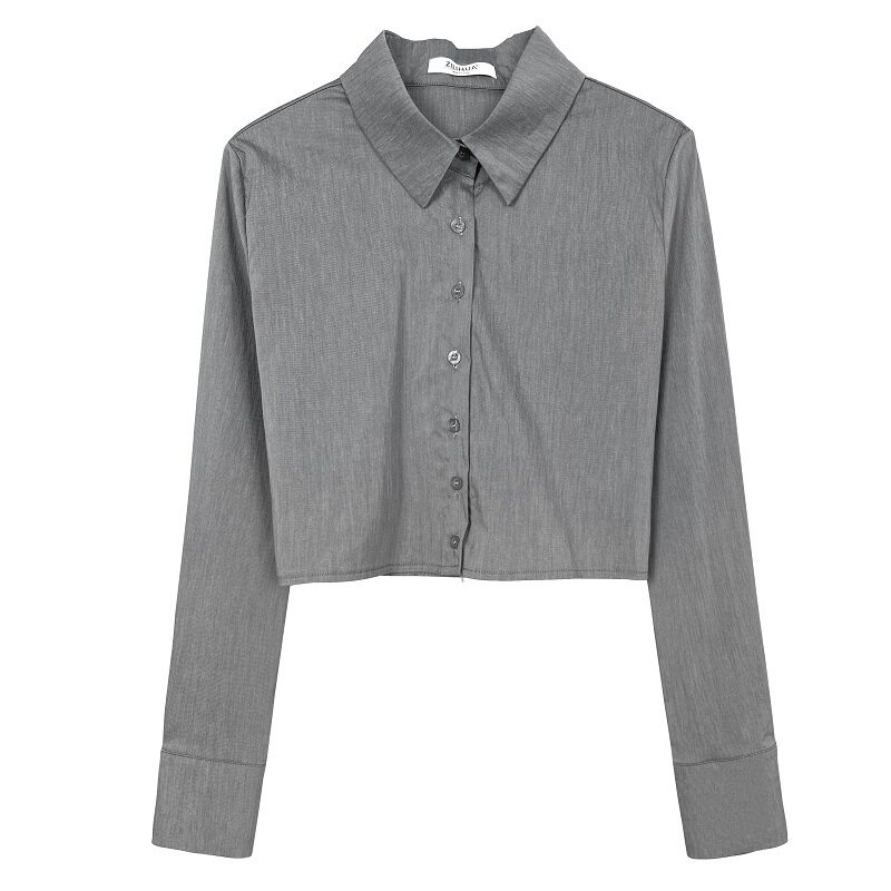 📚 韩国东大门新款修身显瘦性感显身材短款露腰短款长袖白色衬衫