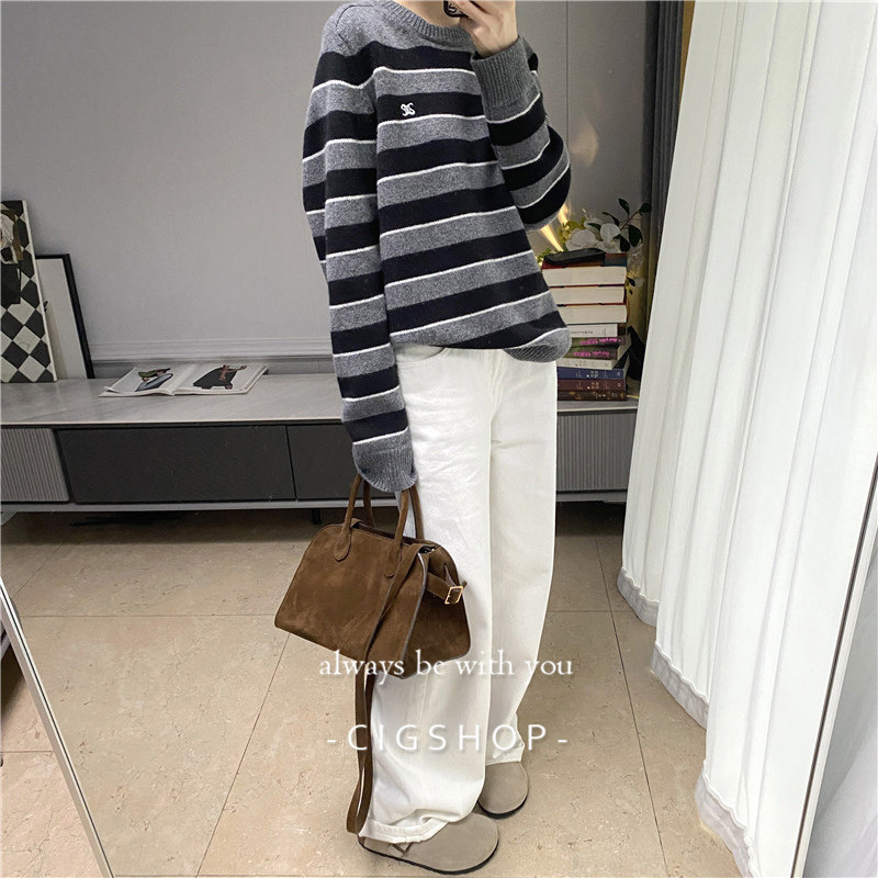 📚 秋冬升级加薄绒高腰显瘦白色牛仔裤极简Row风阔腿休闲裤女裤子