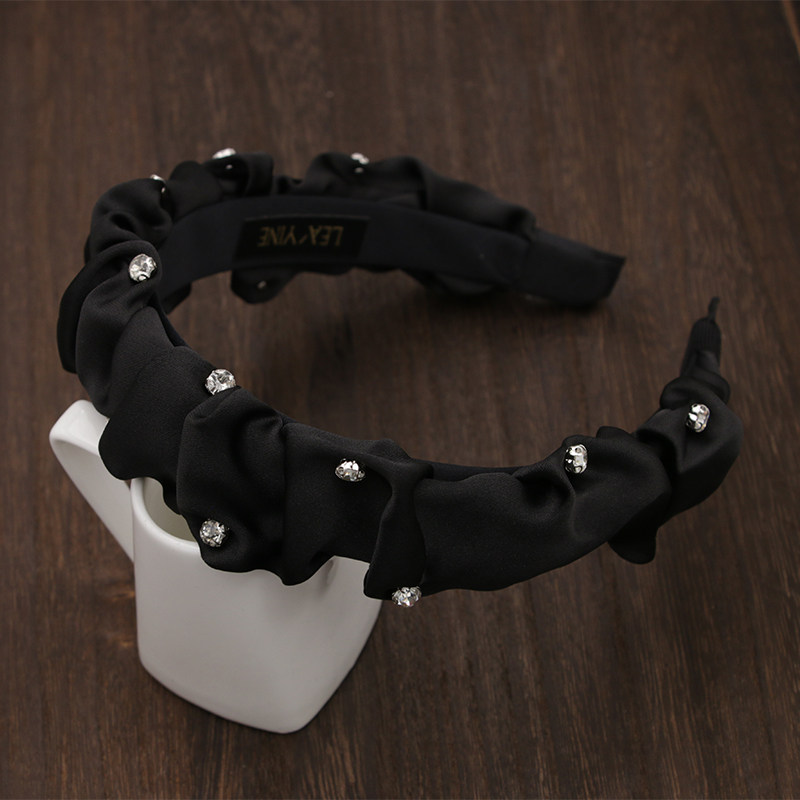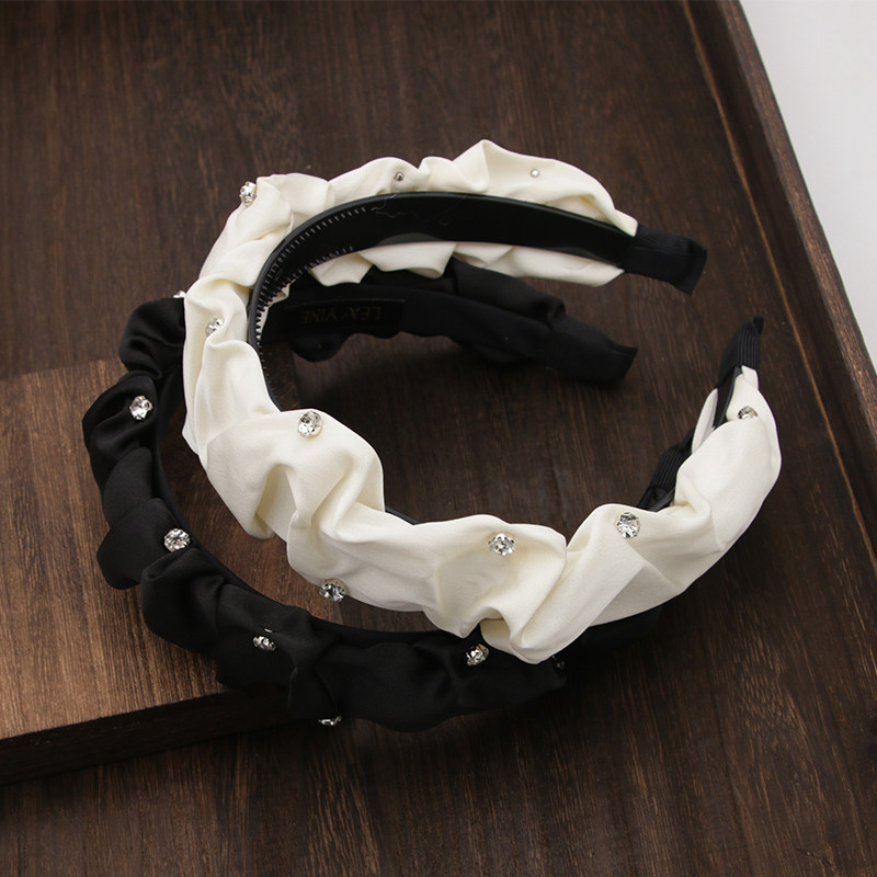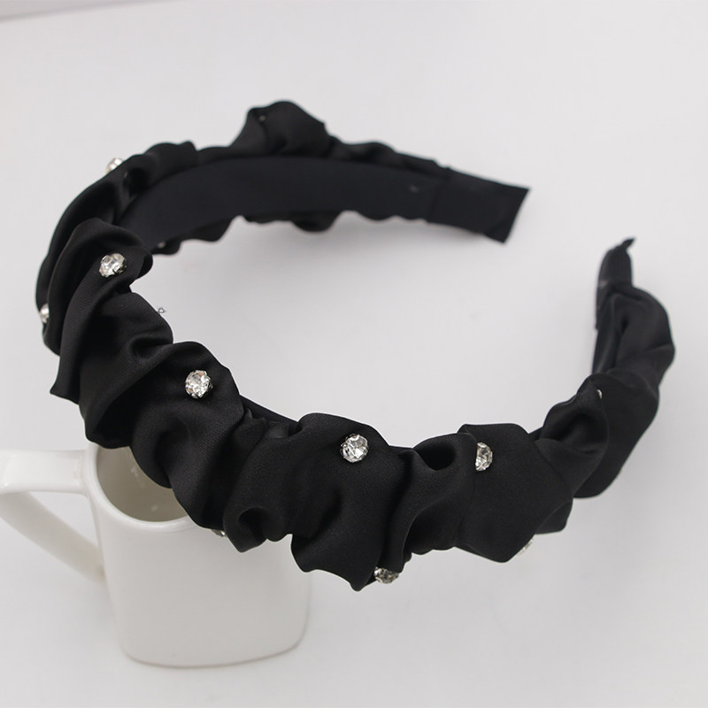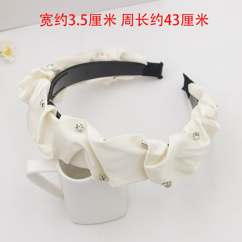 📚 新款高颅顶缎面褶皱水钻发箍女高级感显脸小头箍洗脸专用发卡头饰