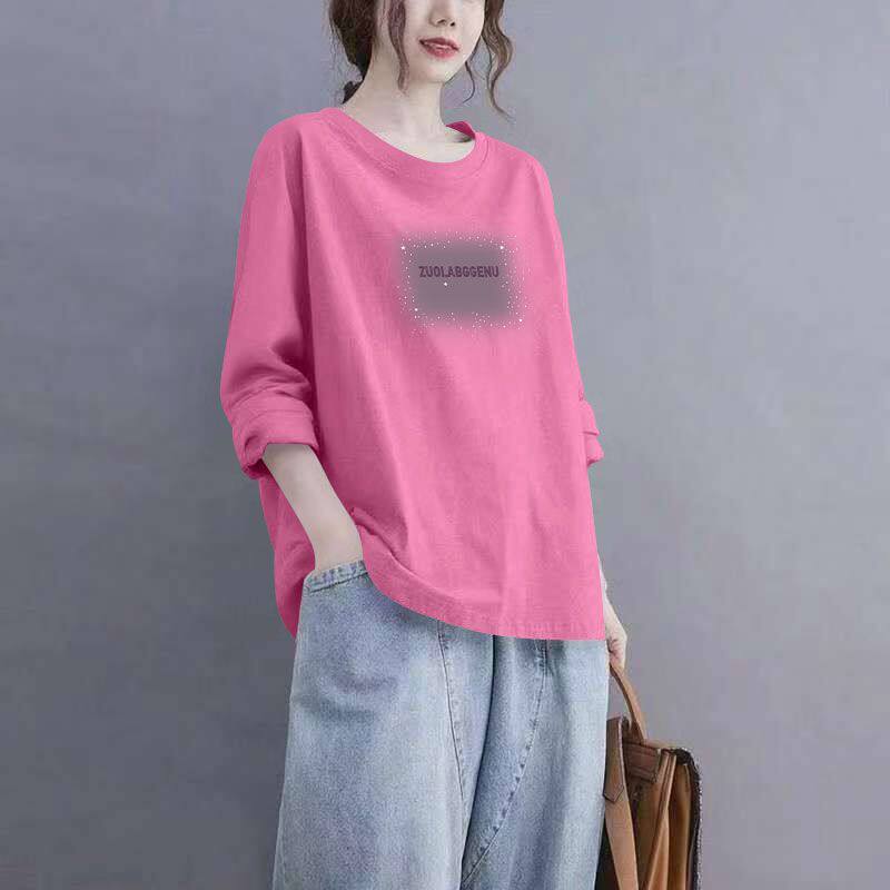 📚 秋冬纯棉紫蓝色长袖圆领T恤女时尚新款韩版百搭宽松显瘦内搭上衣