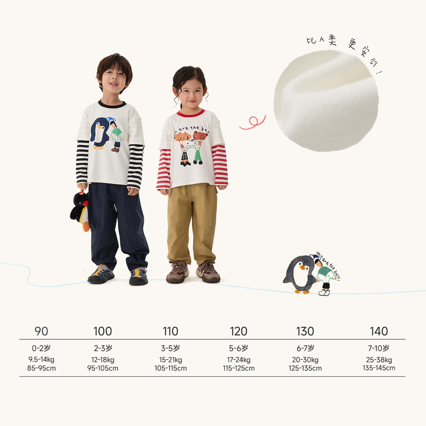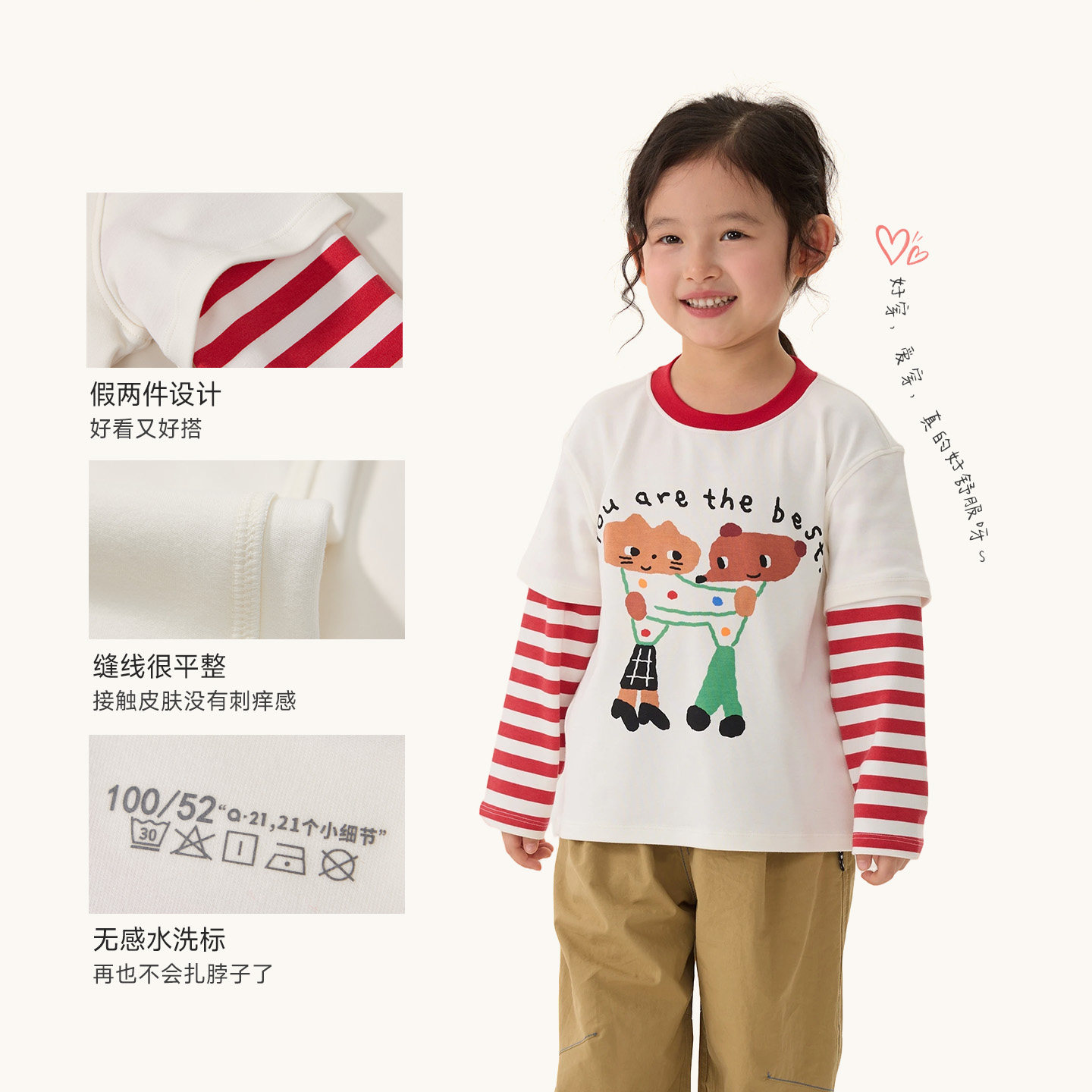 📚 Q21天丝棉涂鸦儿童长袖T恤男女童拼色假两件打底衫春款圆领上衣