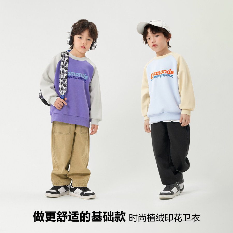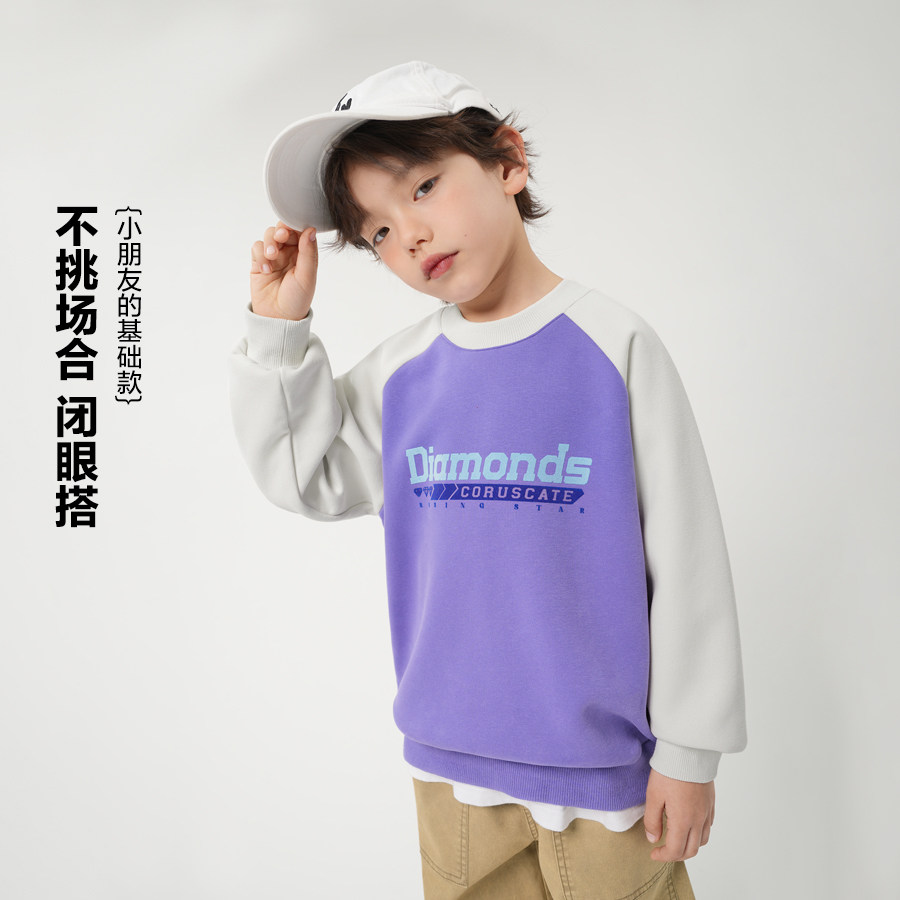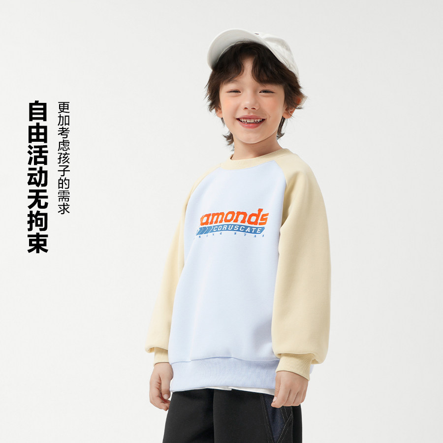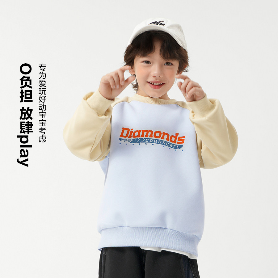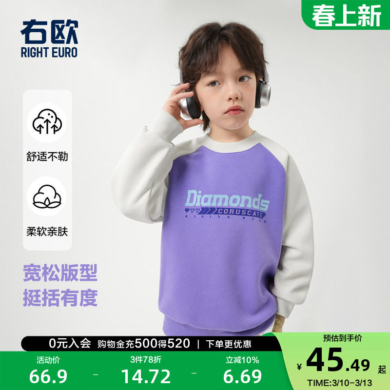 📚 右欧男童女童卫衣拼色春秋季2025新款童装字母儿童上衣中大童春装