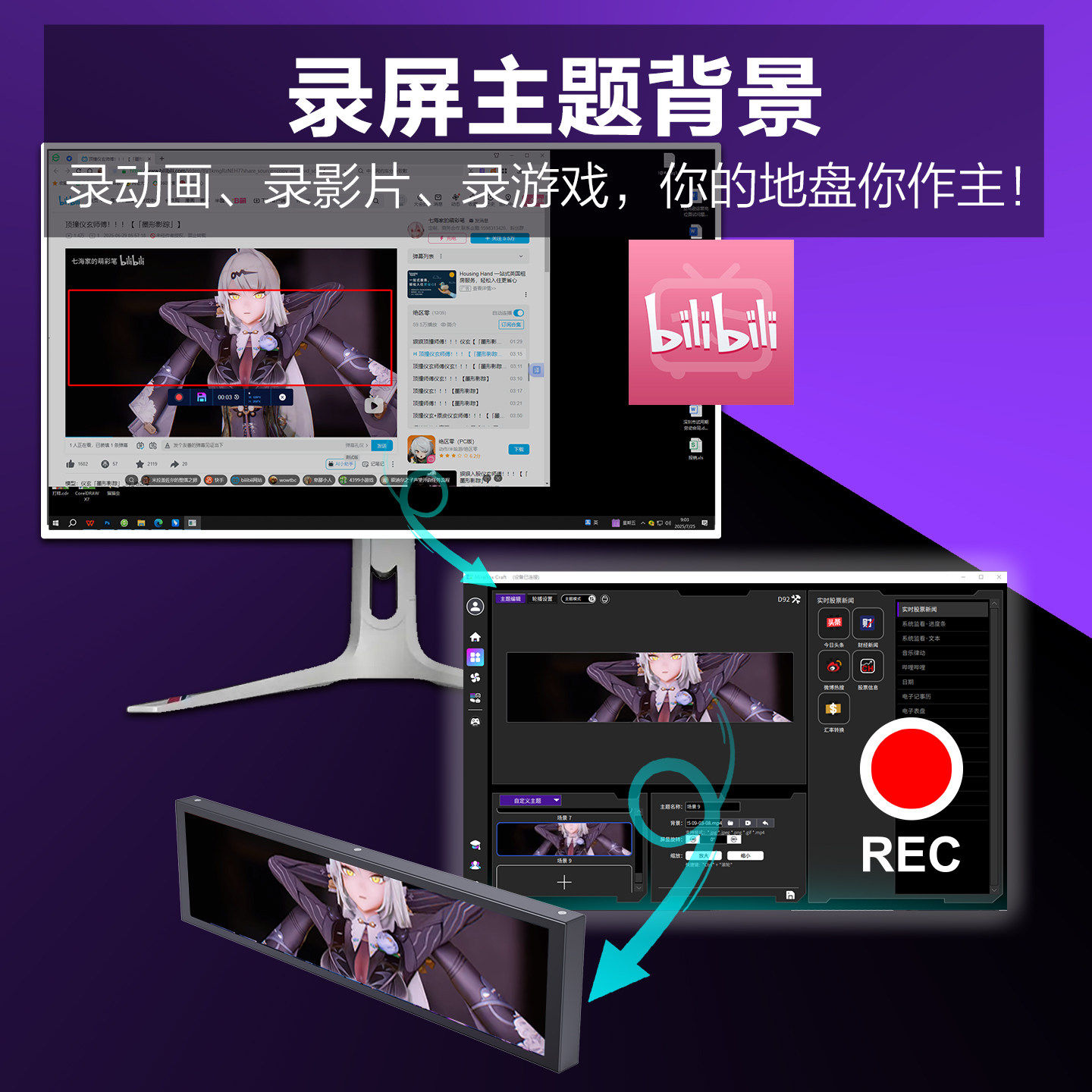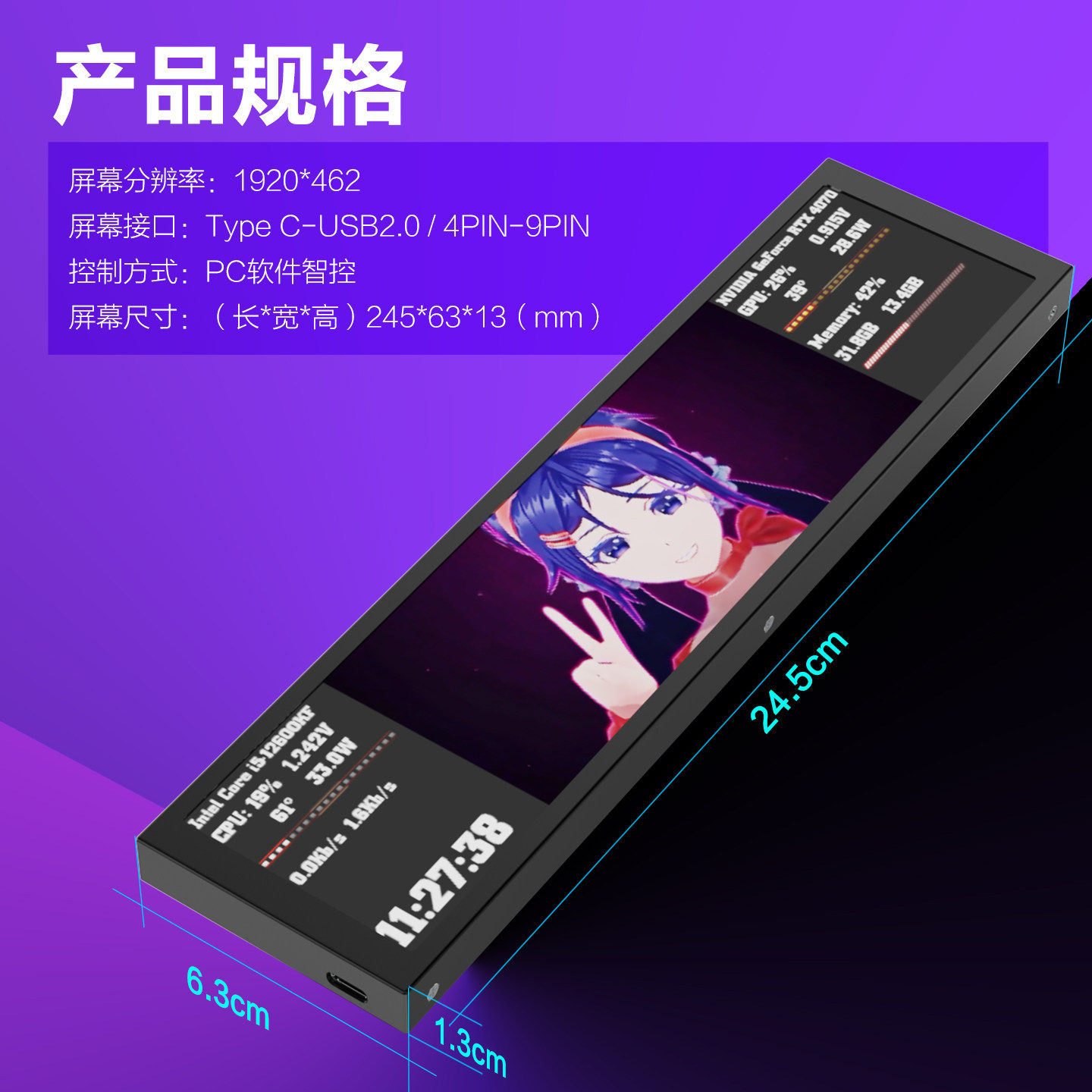 📚 妙联宝D92机箱副屏电脑主机长条屏内置监控CPU温控显示桌面小屏幕