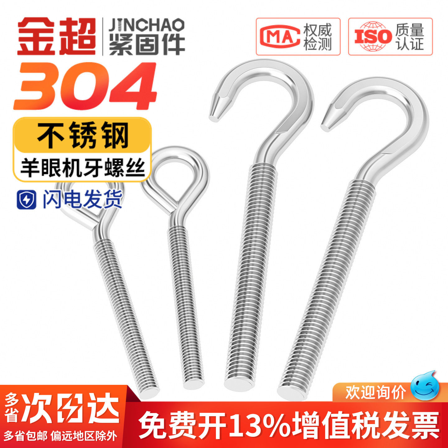📚 304不锈钢吊环螺丝带圈挂钩螺杆圆环形钩形螺栓羊眼钩环M4M5-M20