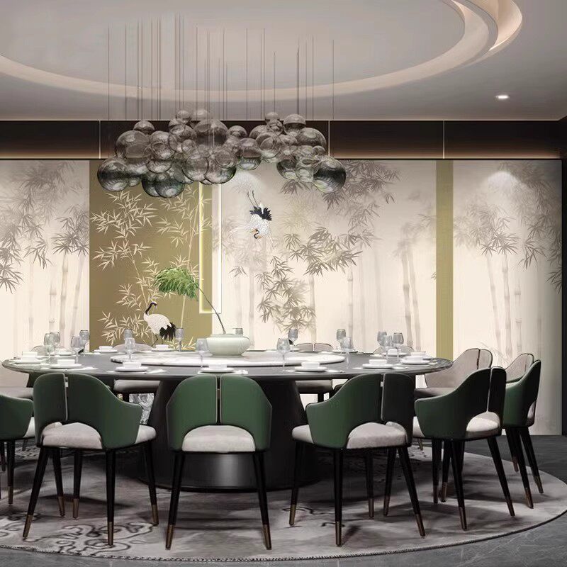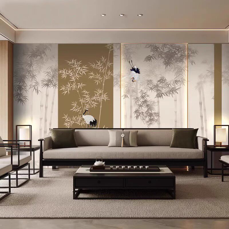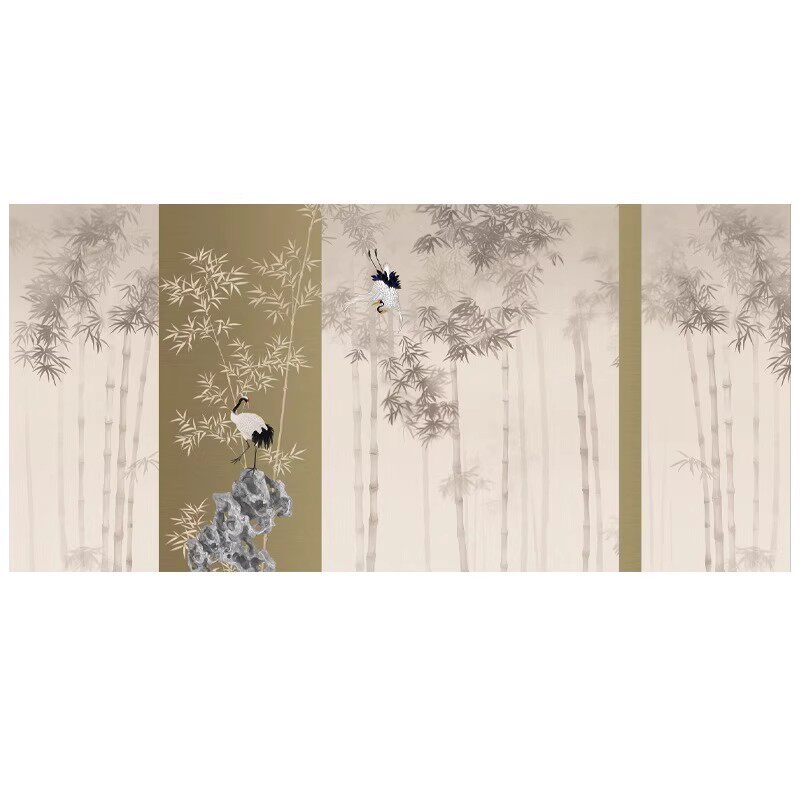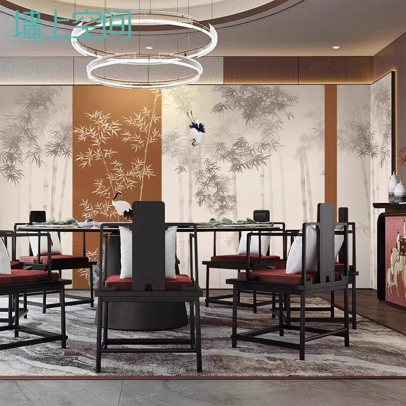 📚 3D新中式水墨竹林仙鹤壁纸餐厅饭店包厢墙纸民宿沙发床头背景墙布
