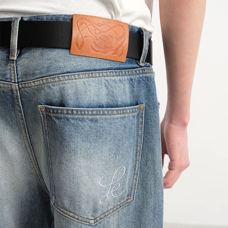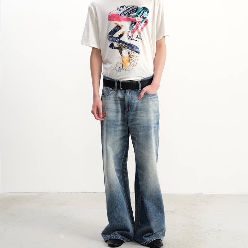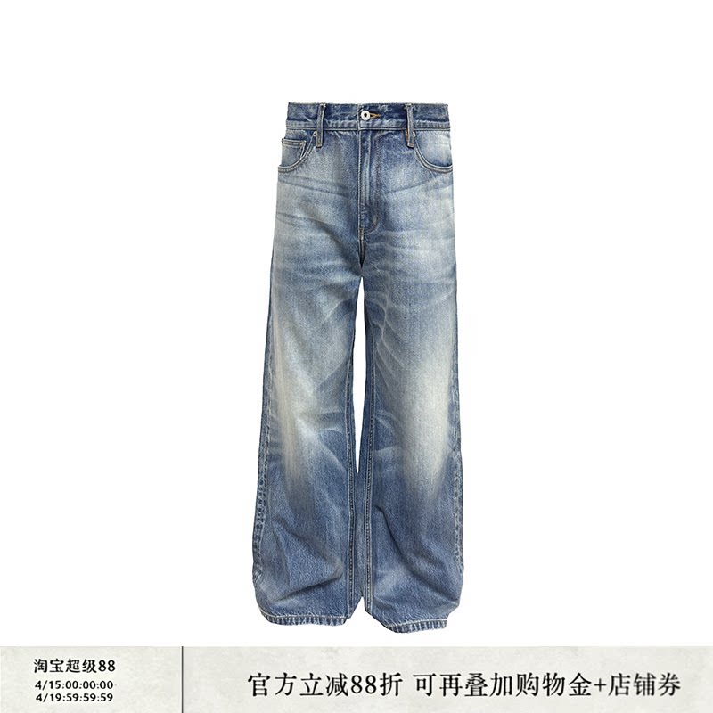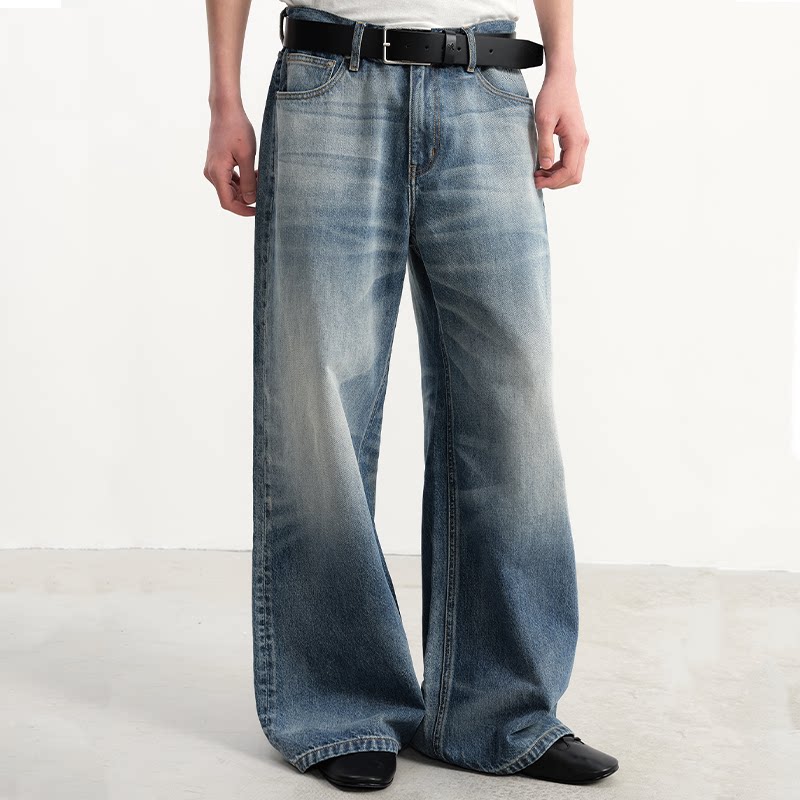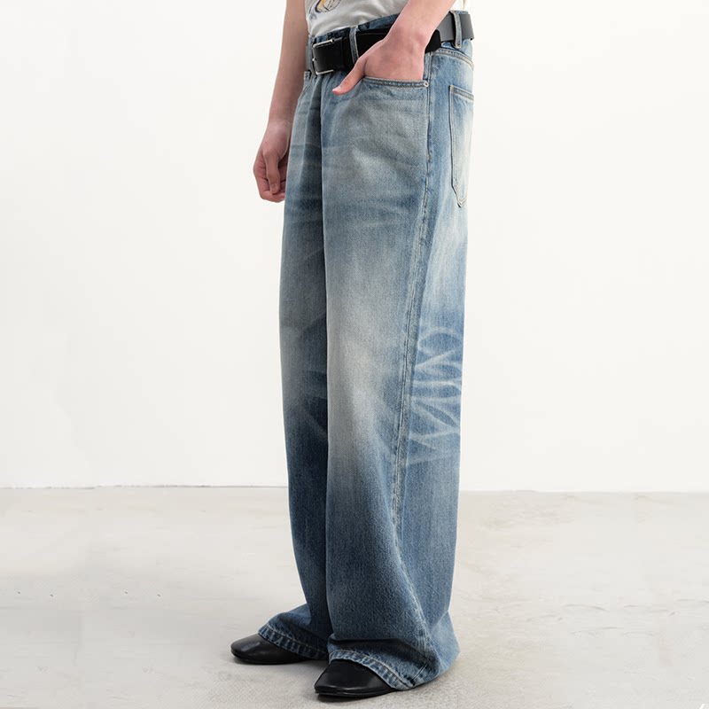 📚 JCAESAR DENIMS灰蓝阔腿牛仔裤 利落硬挺 猫须纹理 宽松直筒长裤