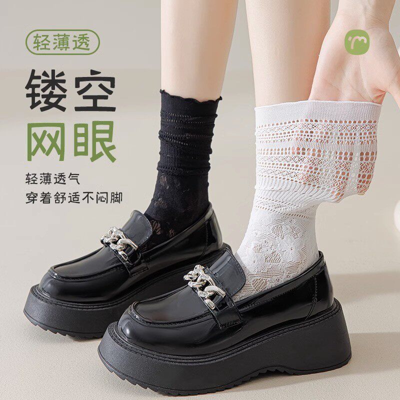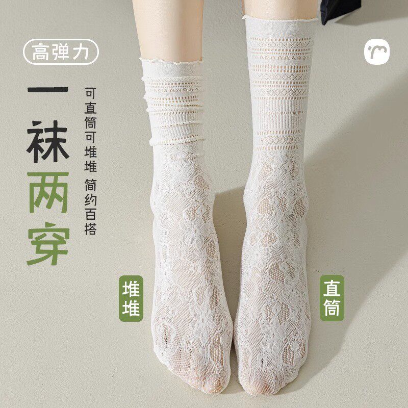 📚 堆堆袜女款袜子春夏薄款蕾丝花边中筒袜芭蕾风黑色冰冰袜轻薄透气