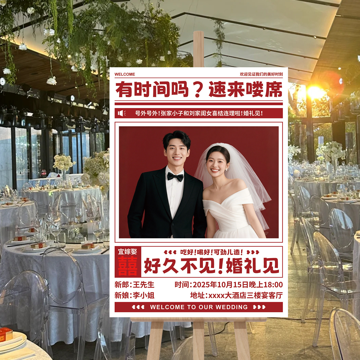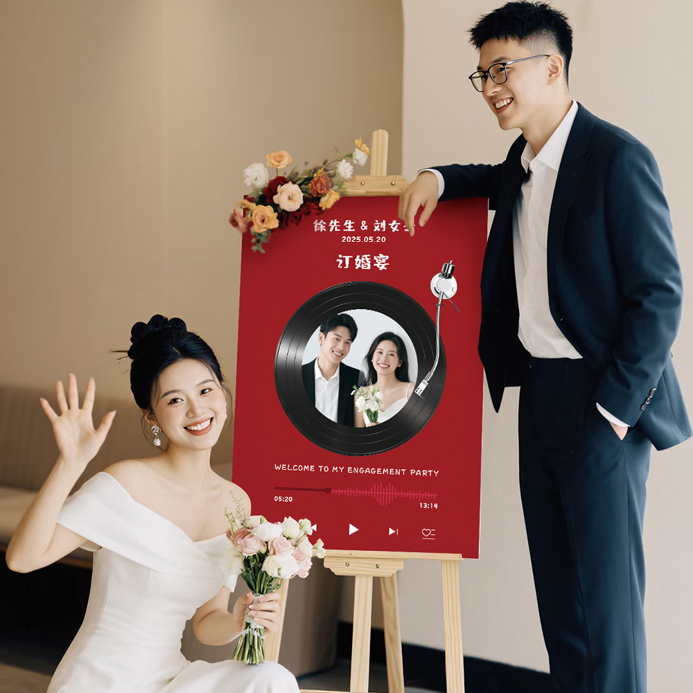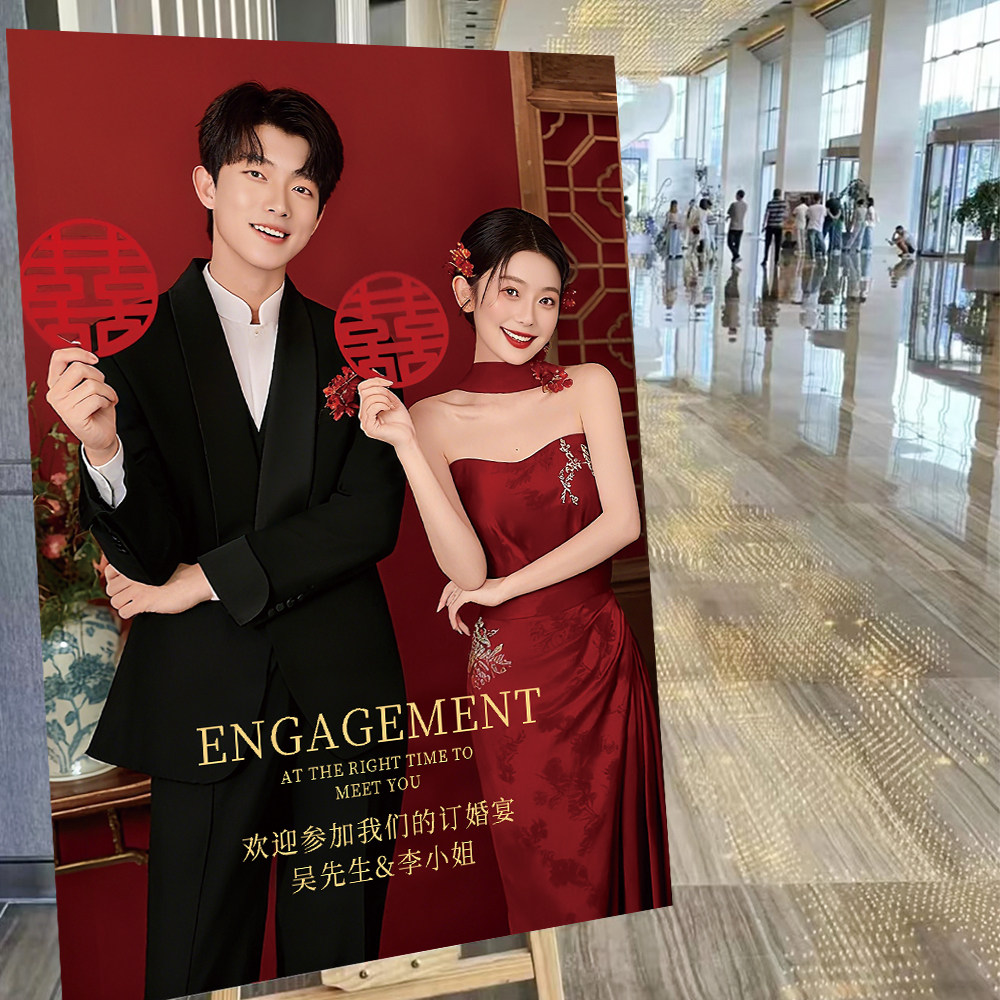 📚 订婚宴酒店背景迎宾牌kt板定制结婚礼引导指示牌装饰用品场景布置