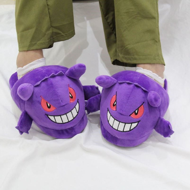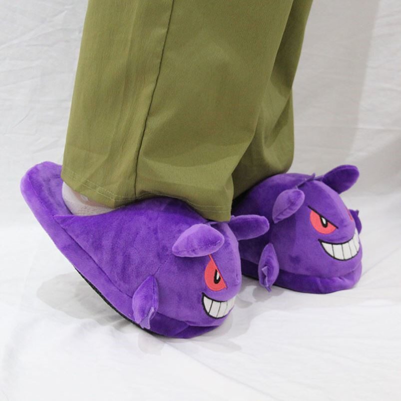 📚 耿鬼拖鞋毛绒伊布恶魔保暖软底棉拖抽象情侣包头拖搞怪居家地板拖