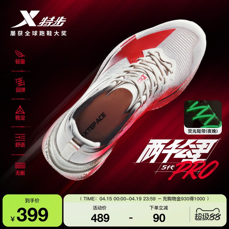 📚 特步两千公里5代PRO丨跑步鞋男无板体育跑鞋减震耐磨运动鞋女五代