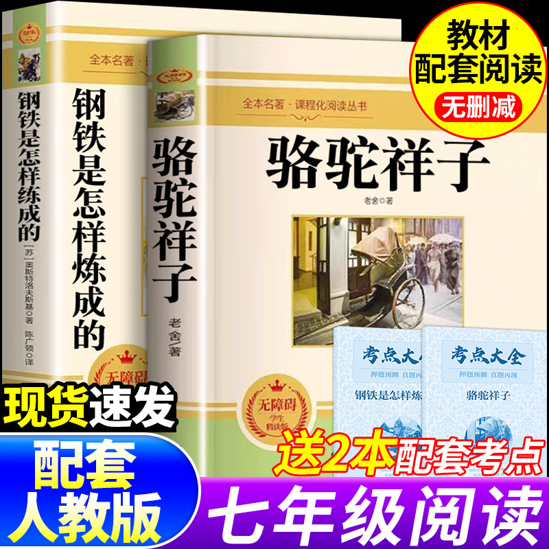 📚 骆驼祥子和钢铁是怎样炼成的正版原著完整版七年级下册必读正版课外书初一课外阅读书籍配套人教版名著老舍朝花夕拾西游记初中生7